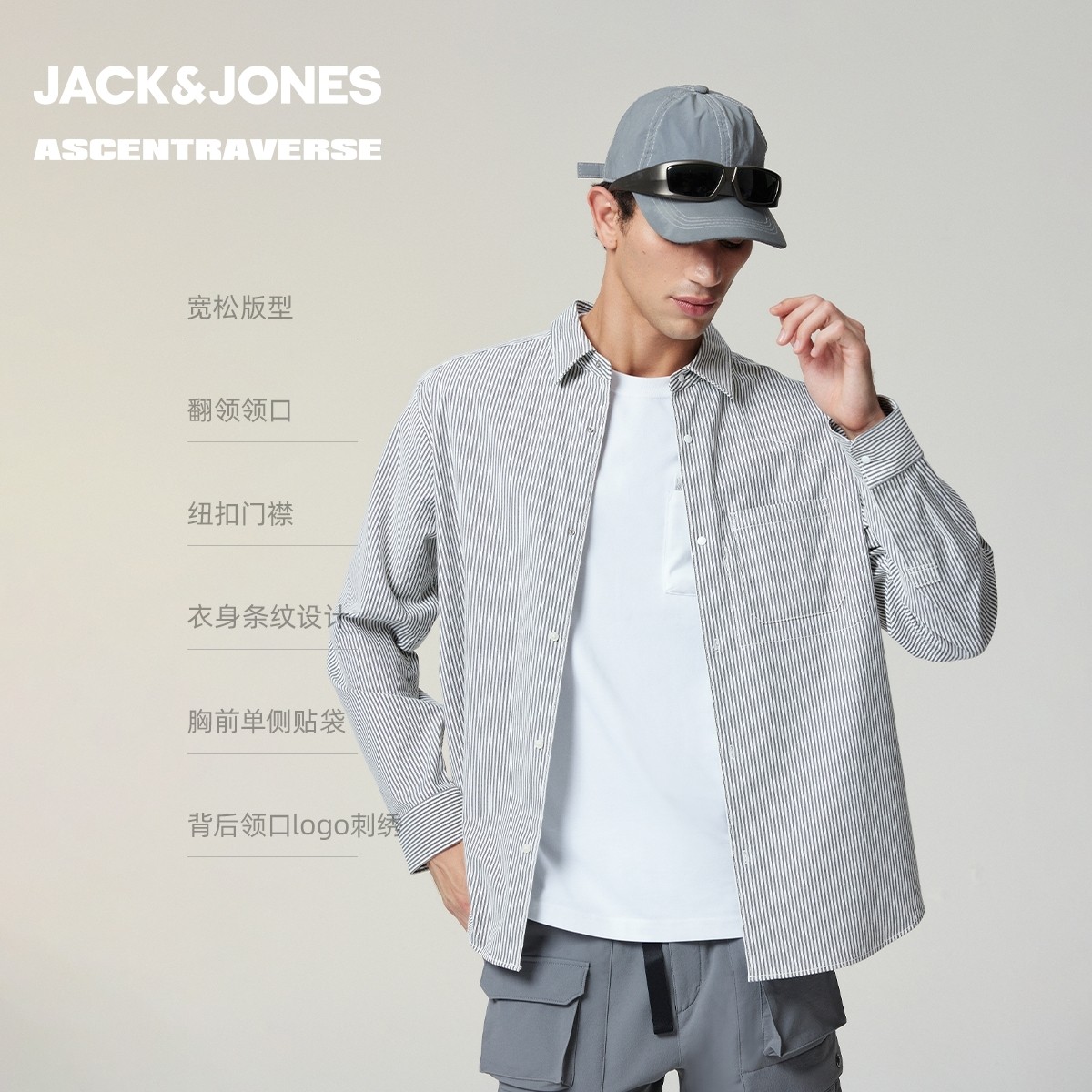 【AT系列】杰克琼斯男装衬衫冬季新款中性简约时尚翻领宽松潮上衣