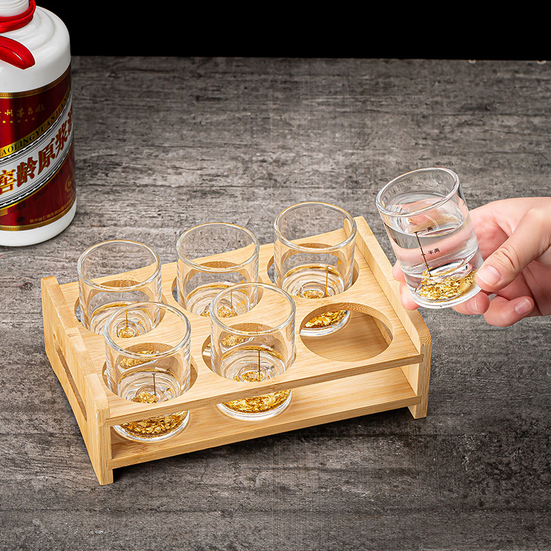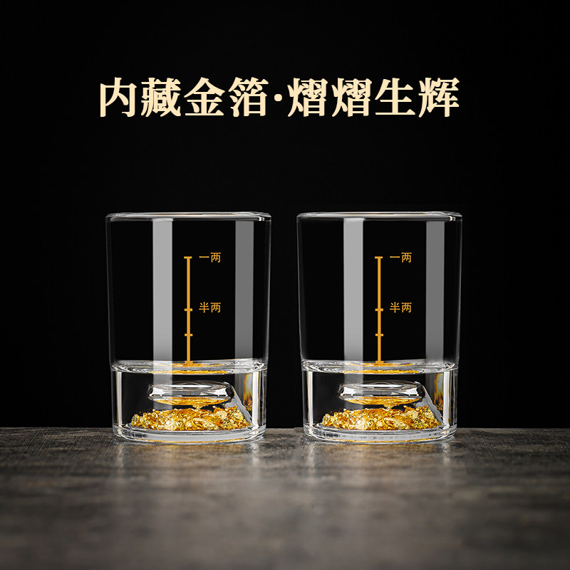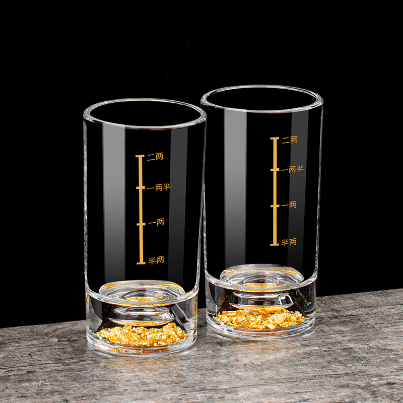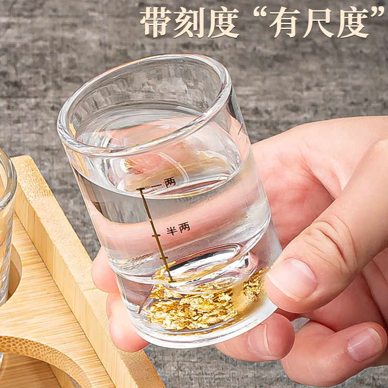 青苹果金箔二两白酒杯家用套装带刻度分酒器轻奢高档玻璃酒具酒盅