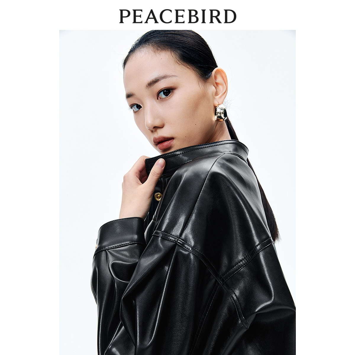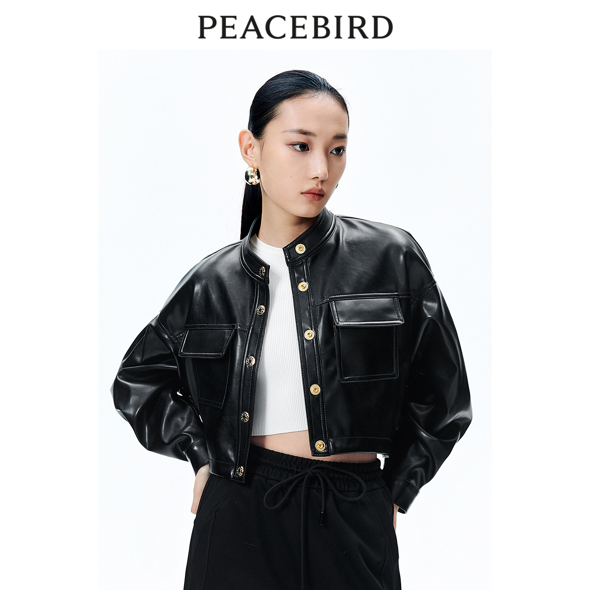 太平鸟女装2025秋季新款时尚休闲个性PU皮夹克短外套A1BBE1434