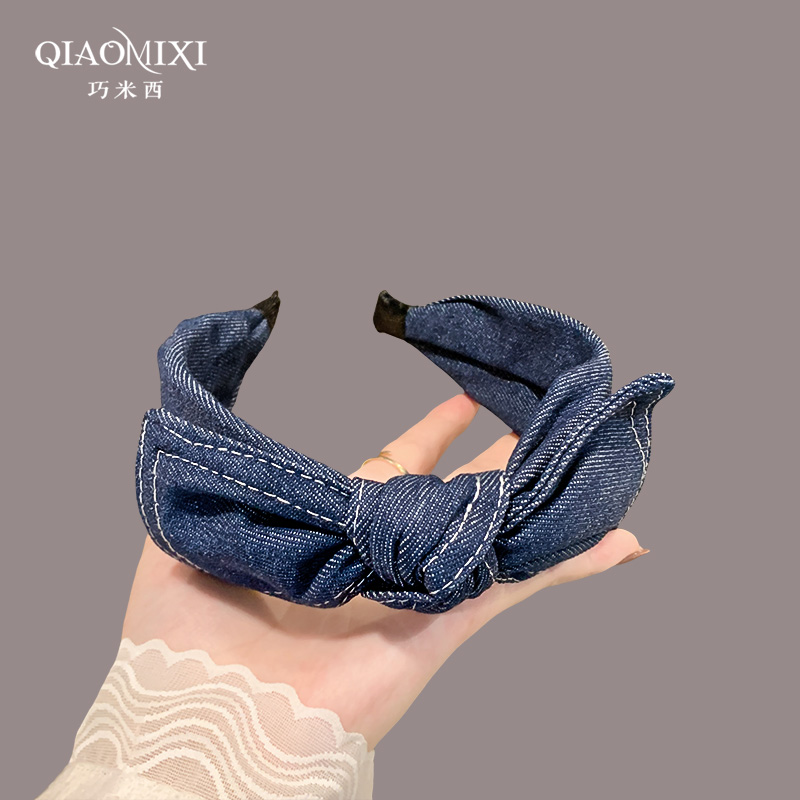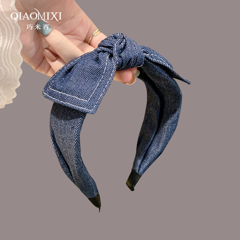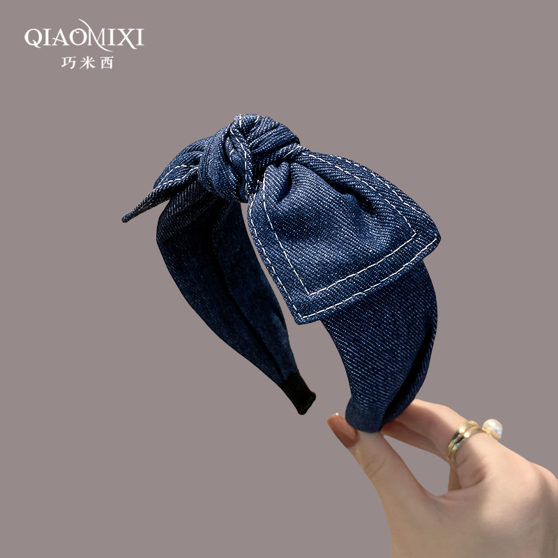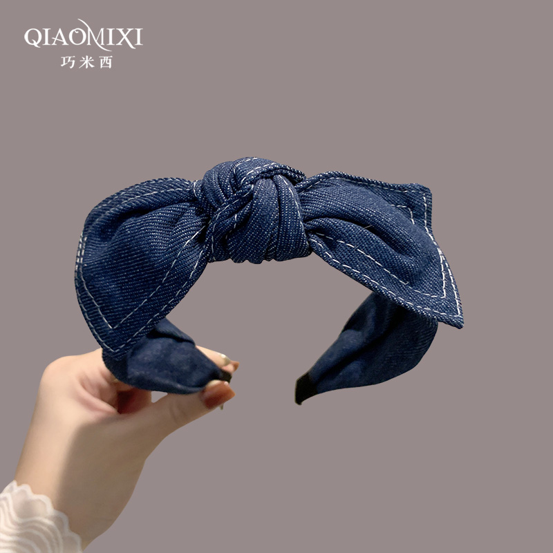 韩国东大门新款牛仔蝴蝶结发箍百搭宽发卡时尚少女头箍发饰头饰女