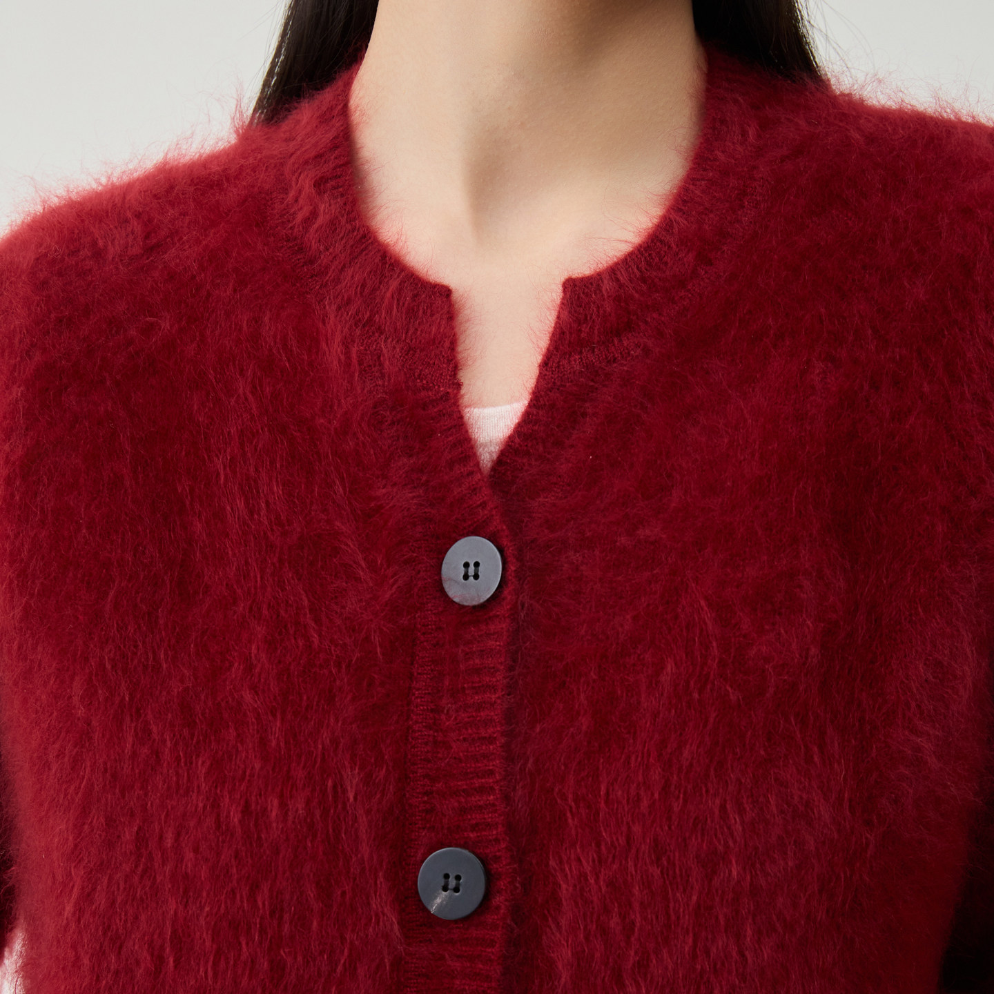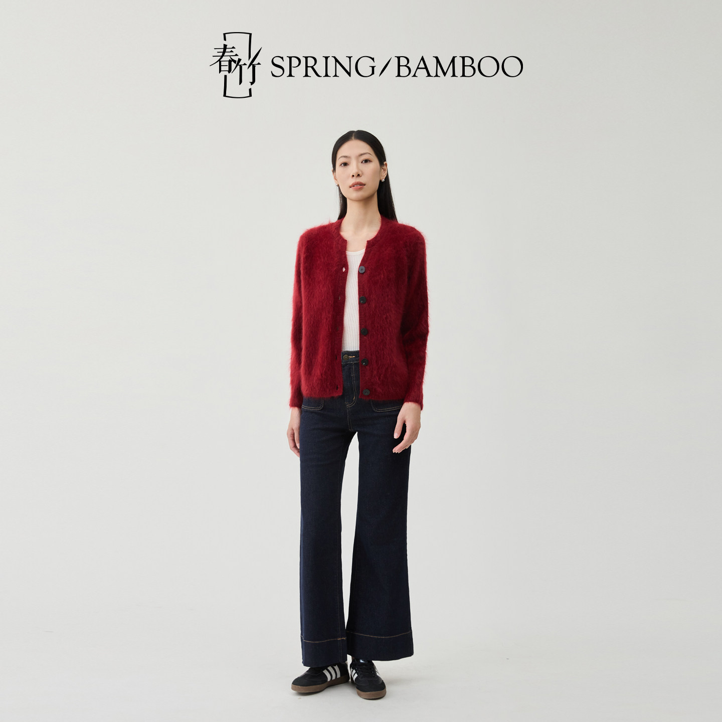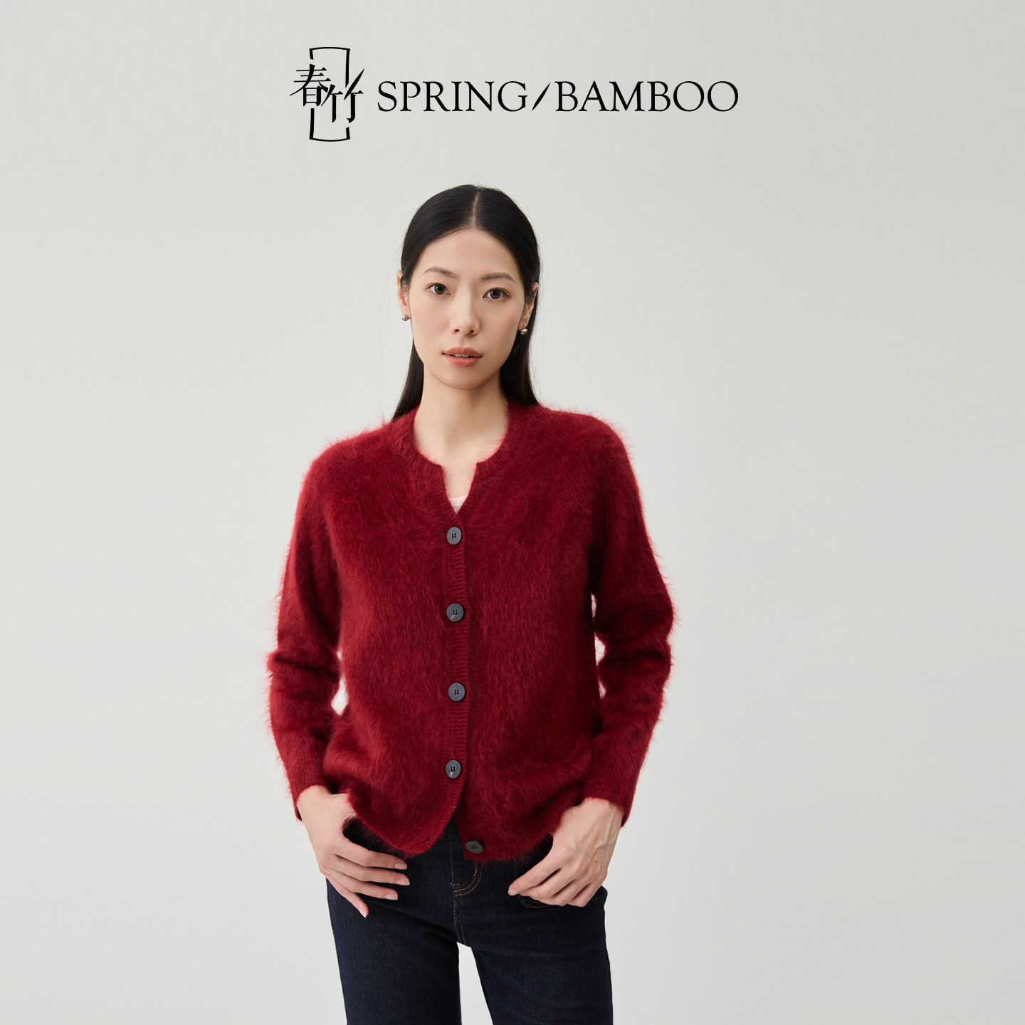 【新年臻选】春竹秋冬新款羊绒拉毛剪刀领扣子长袖女士针织开衫