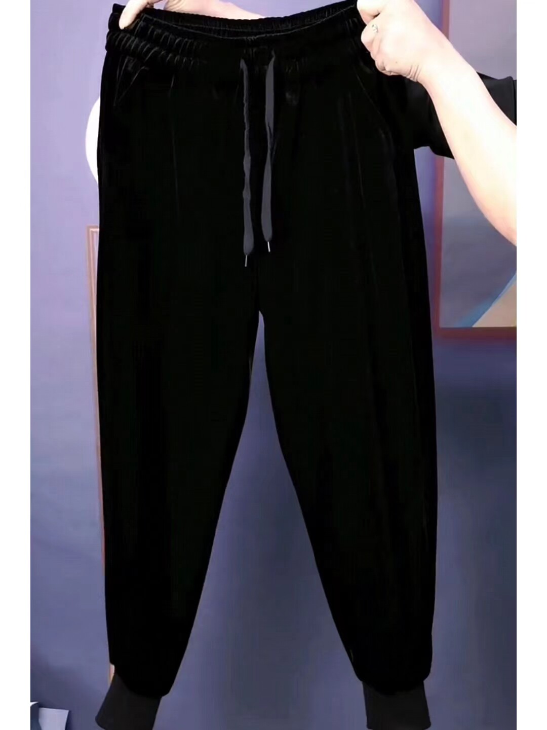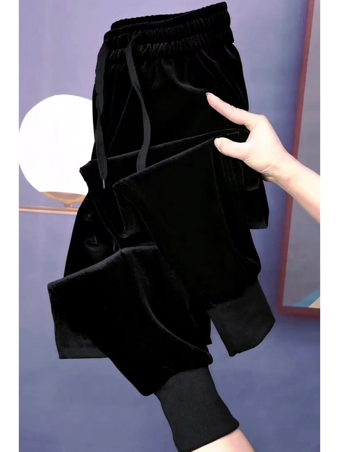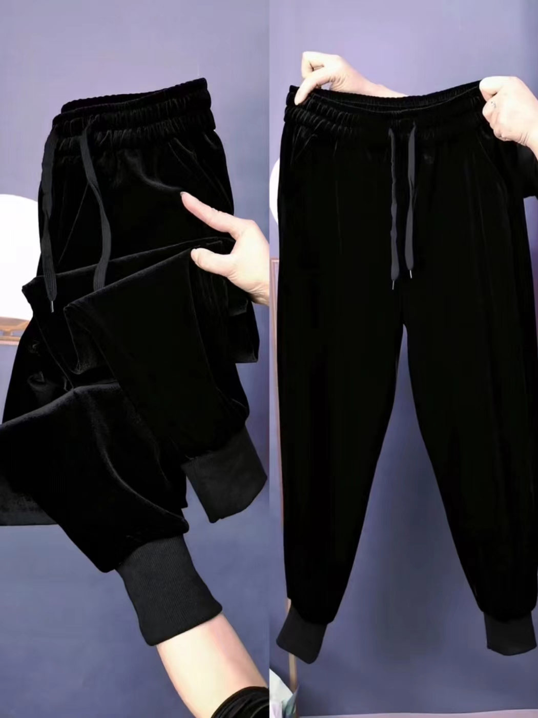 加厚简约丝绒束脚哈伦裤女时尚休闲裤2026春季百搭遮肉马丁裤潮