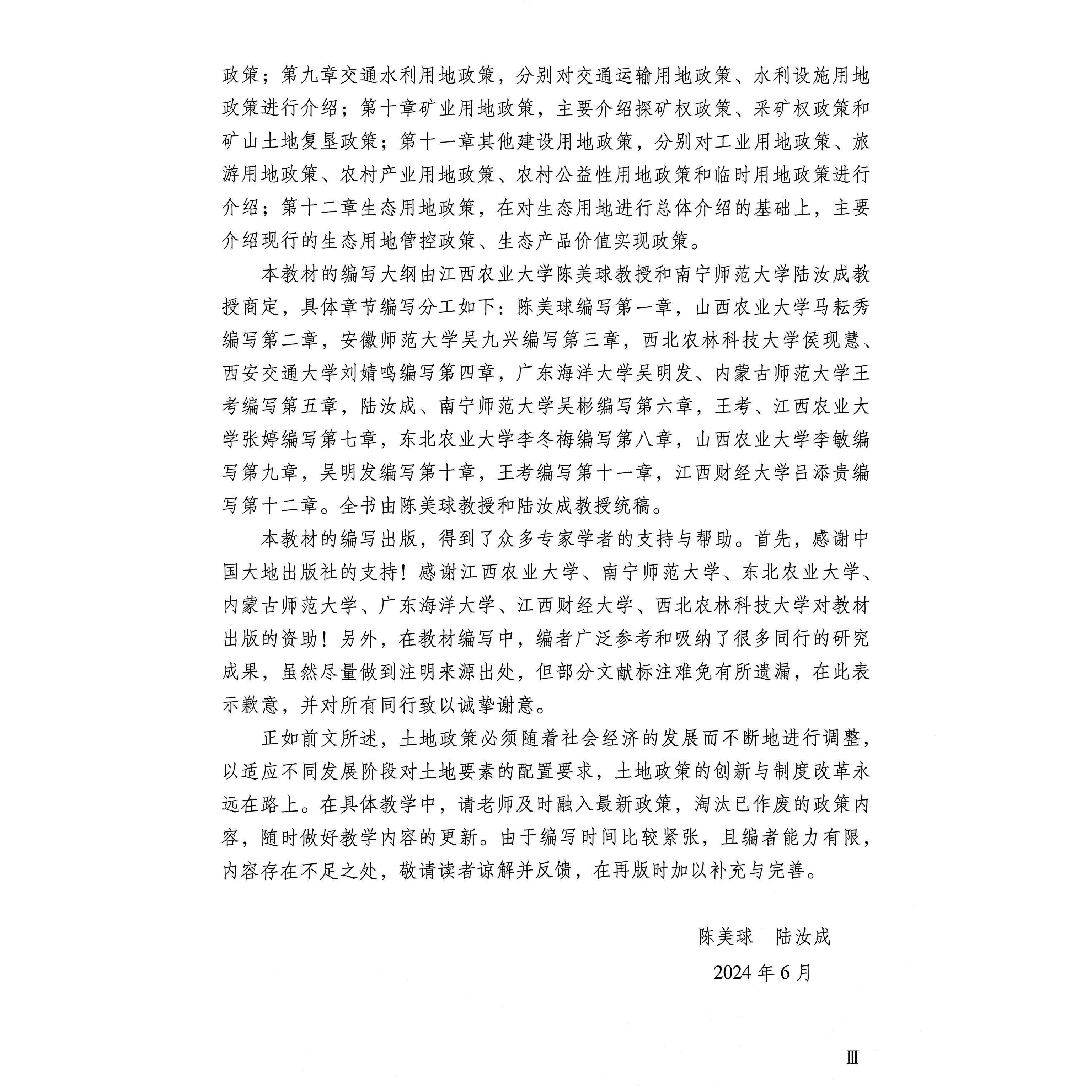 全新正版 土地政策学 土地资源管理专业精品教材 陈美球 陆汝成主编 中国大地出版社9787520013376
