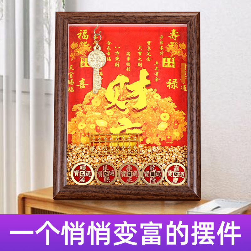五路财神爷摆件开财补库相框招财金元宝客厅玄关办公室工位装饰品