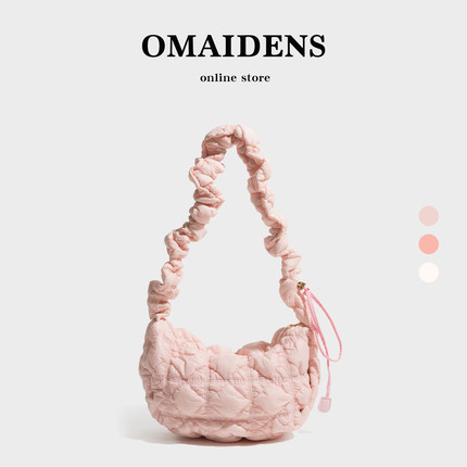 橙子少女绗缝小众云朵褶皱腋下包粉色新款百搭饺子包单肩斜挎包包