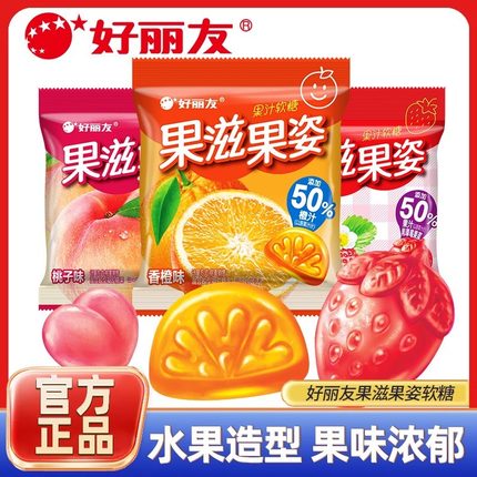 好丽友果滋果姿软糖草莓香橙桃子水果味混合装糖果儿童解馋小零食