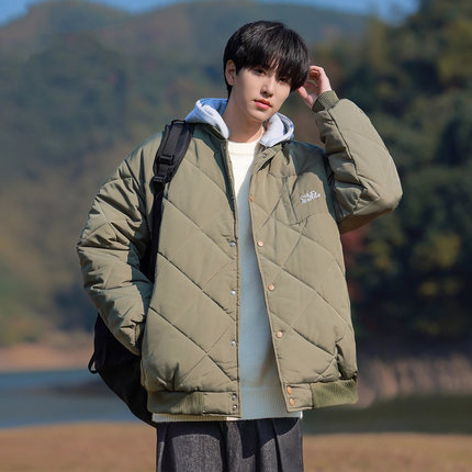 胖胖哥菱格连帽棉衣男冬季重磅大码宽松加厚保暖棒球服外套青少年