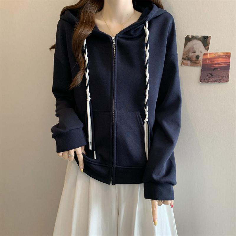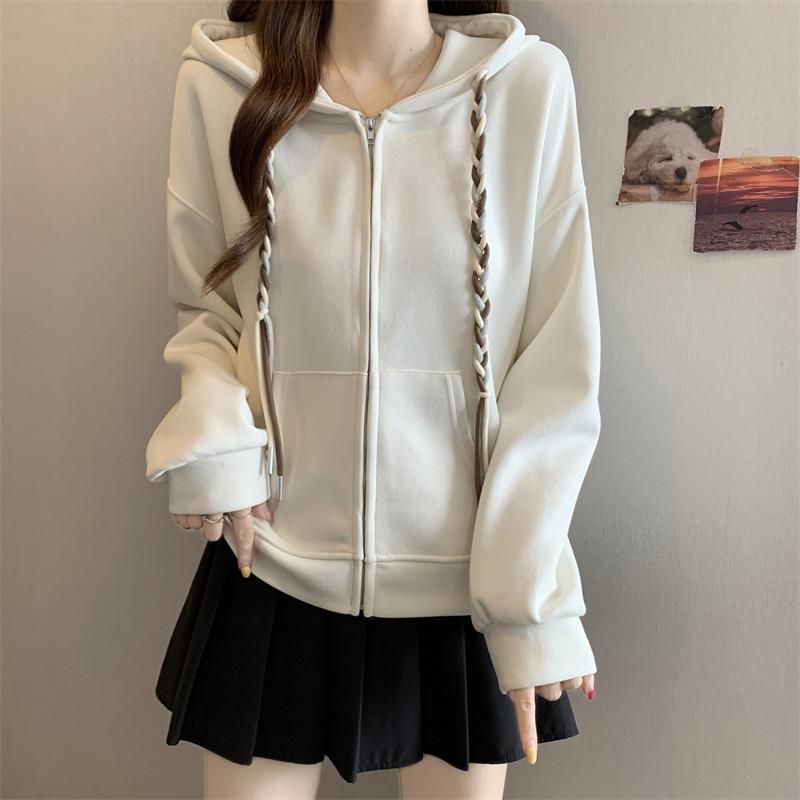 推荐抽绳连帽卫衣外套女春秋2025新款大码胖mm显瘦设计感短款开衫