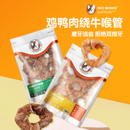 RedBones狗狗零食牛喉管缠鸡肉干鸭肉干泰迪比熊小型犬幼犬磨牙棒