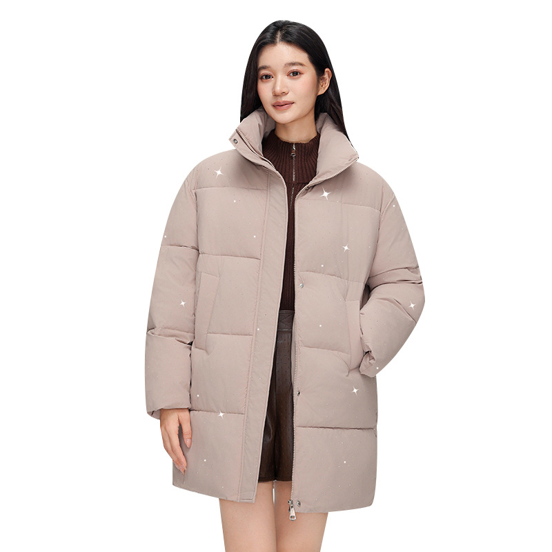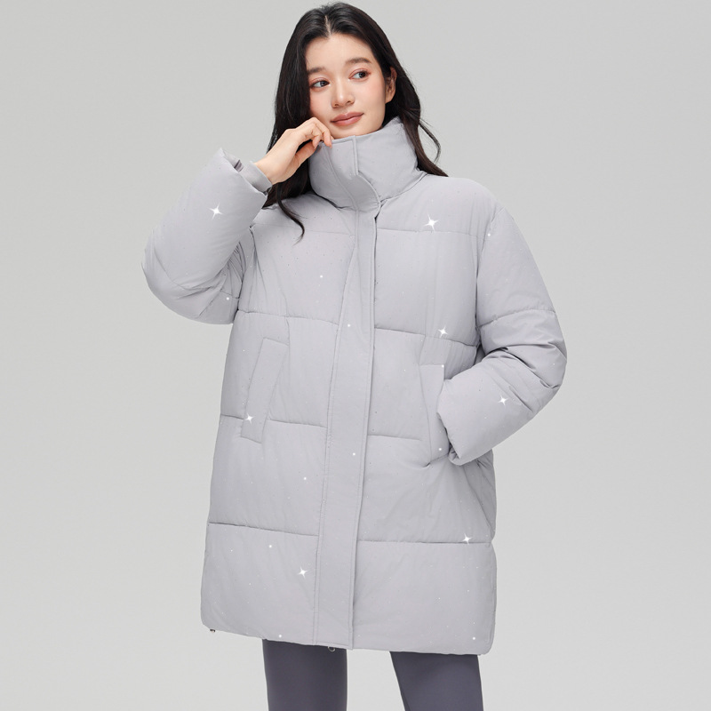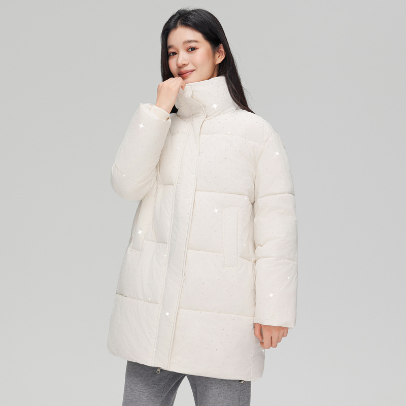 2025冬季新款羽绒棉服女中长款加厚保暖宽松棉衣时尚烫钻棉袄外套
