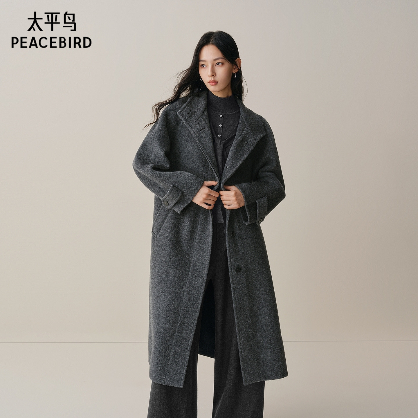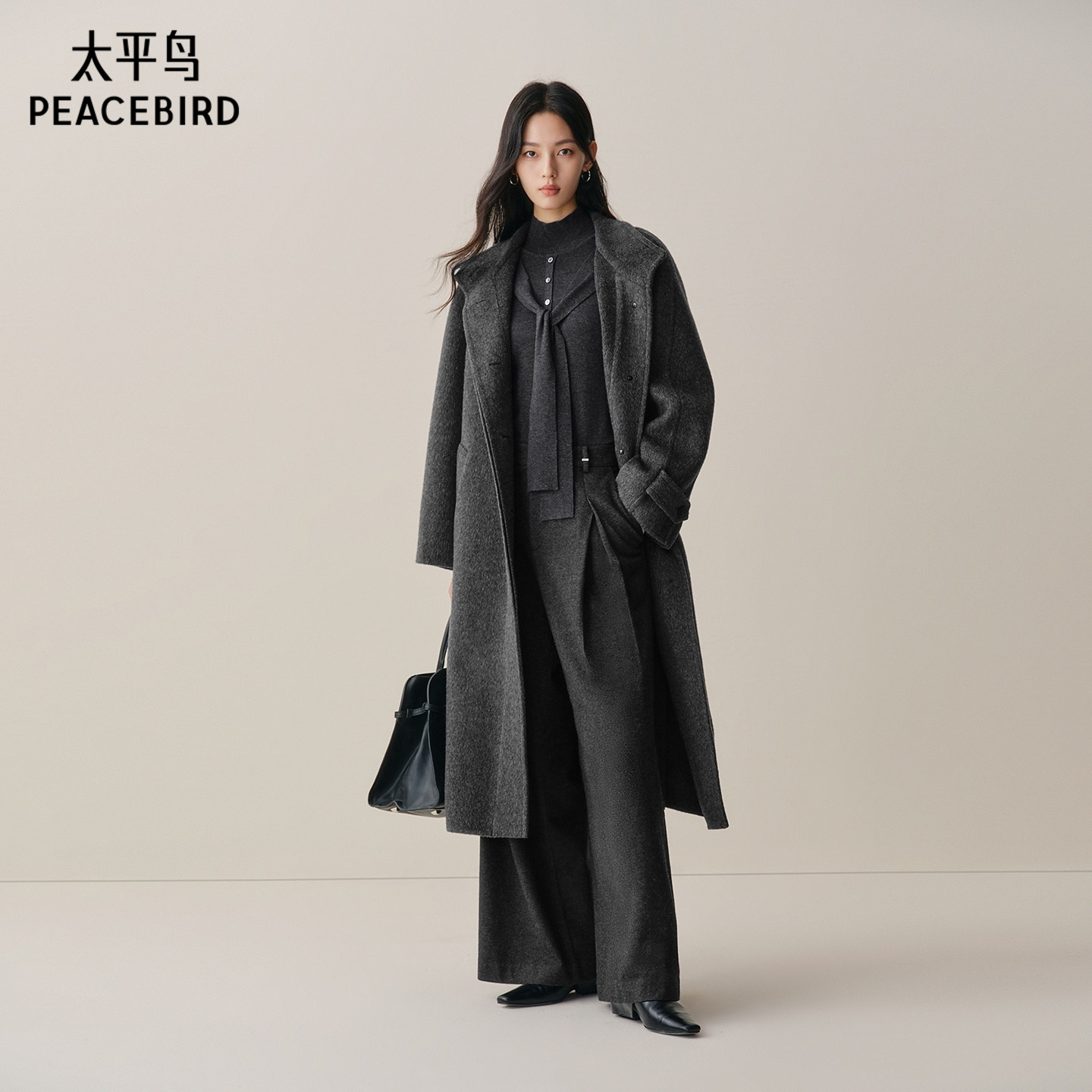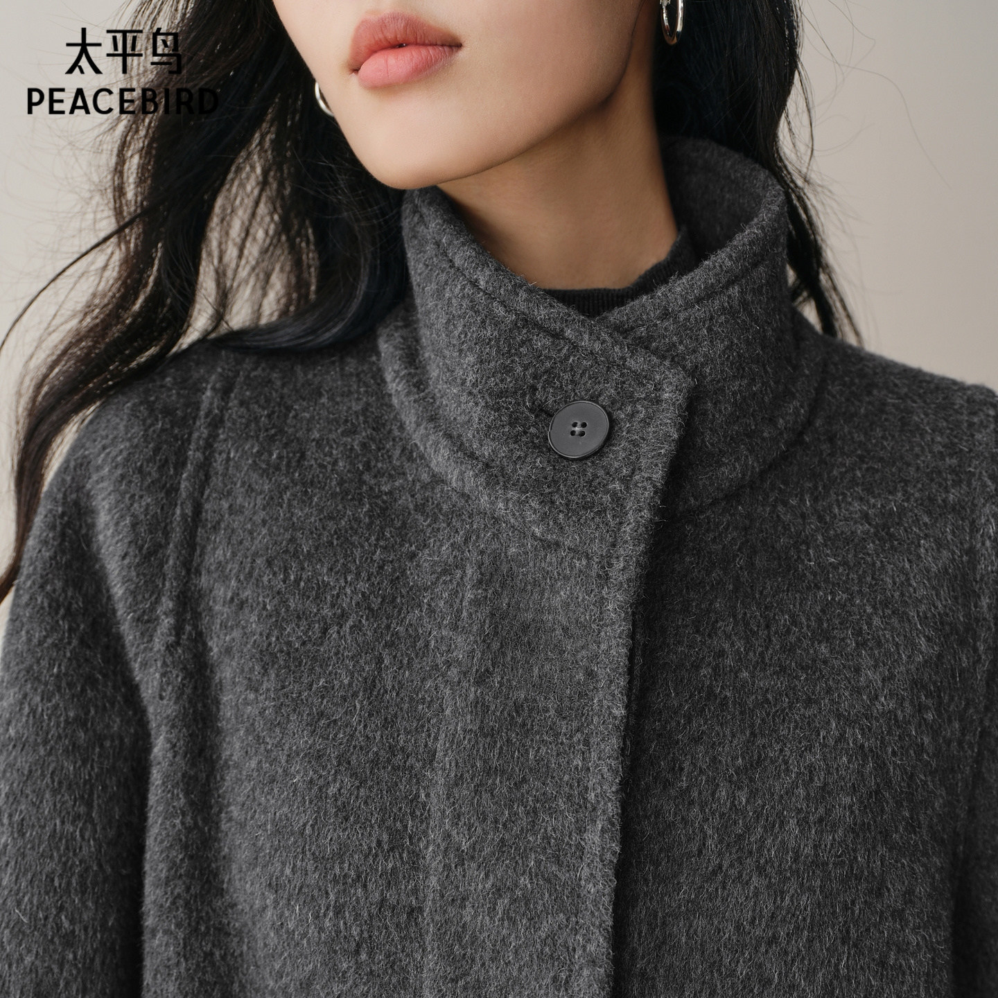 【商场同款】太平鸟甄绒系列风衣式立领牦牛绒混纺大衣A1AAF4331