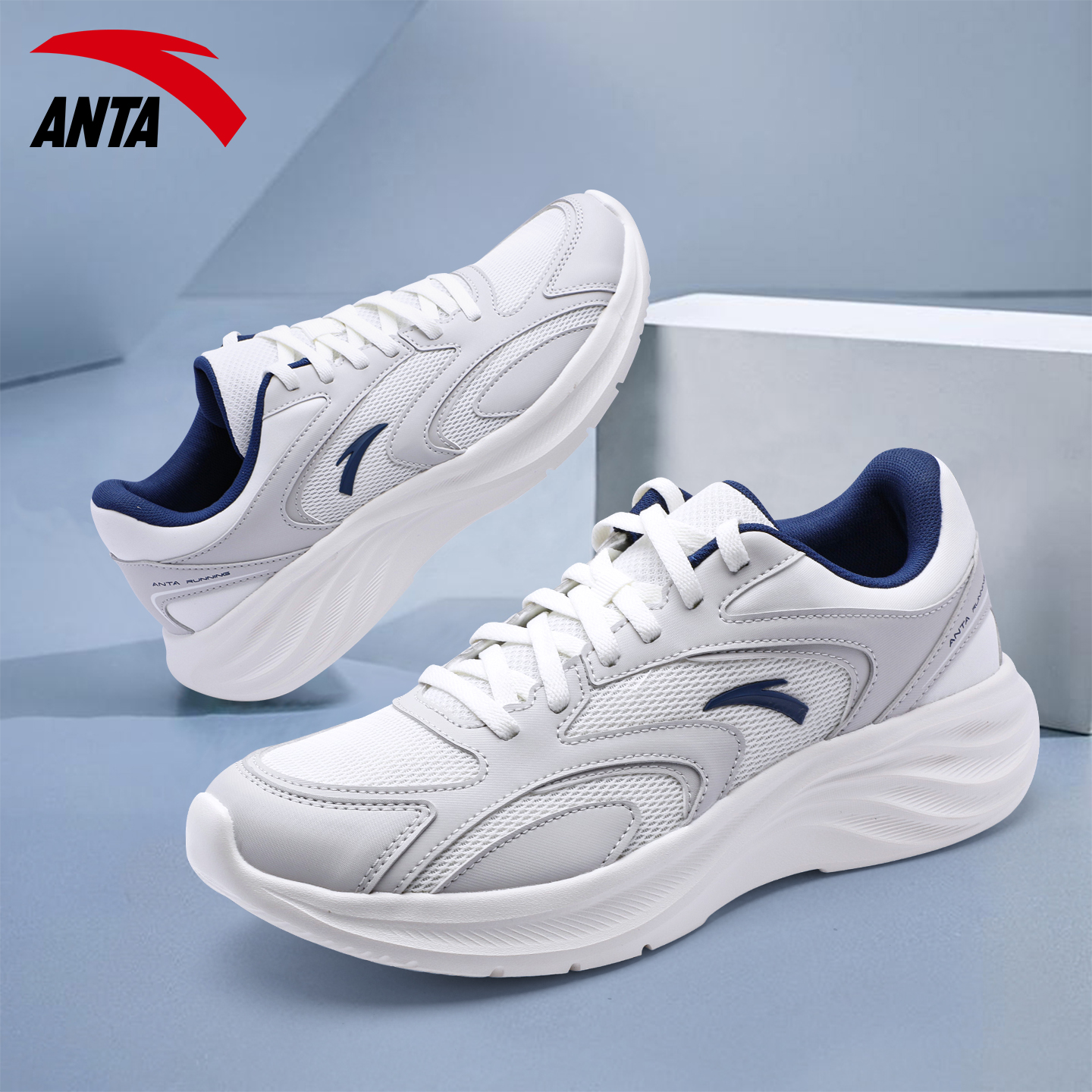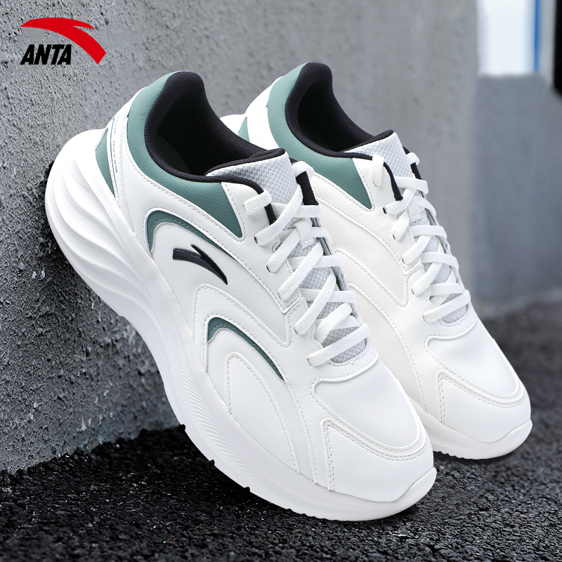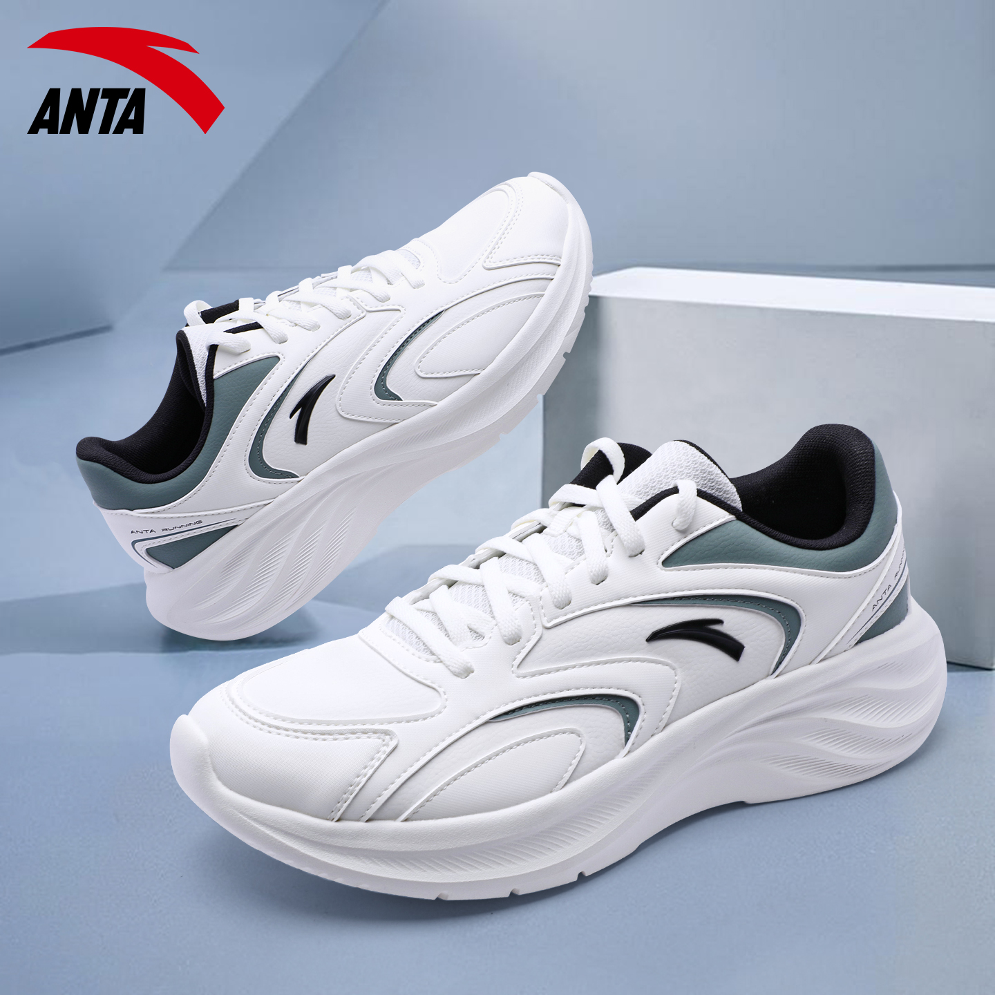 安踏男鞋星云2跑步鞋秋季2025新款皮面复古绿色防泼水减震运动鞋