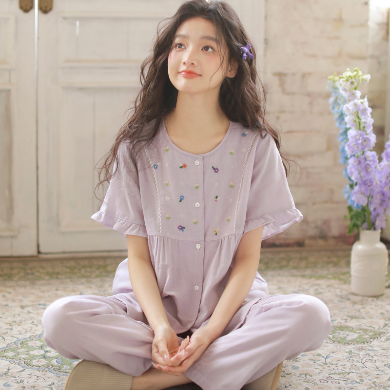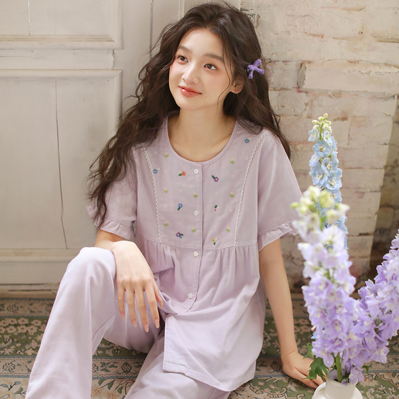 可外穿全棉睡衣女款夏季纯棉2025新款短袖长裤两件套家居服套装