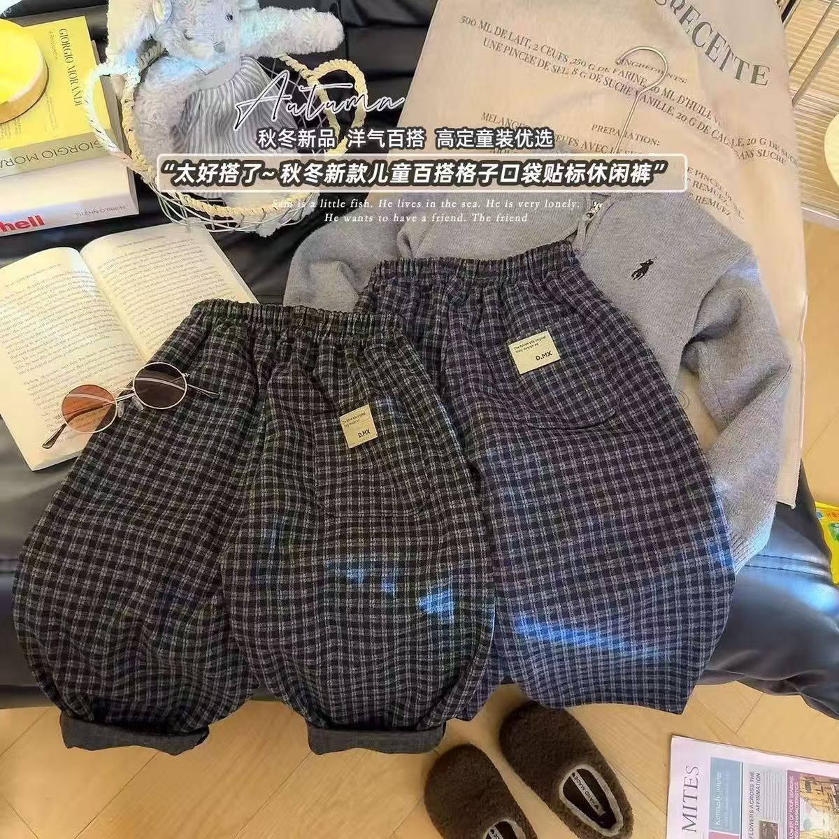 曦诺慈男童裤子春秋款2025新款儿童春装格子裤男宝宝休闲裤长裤