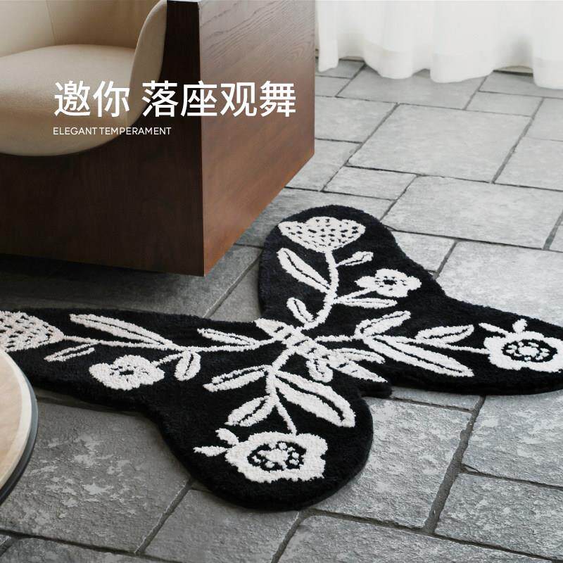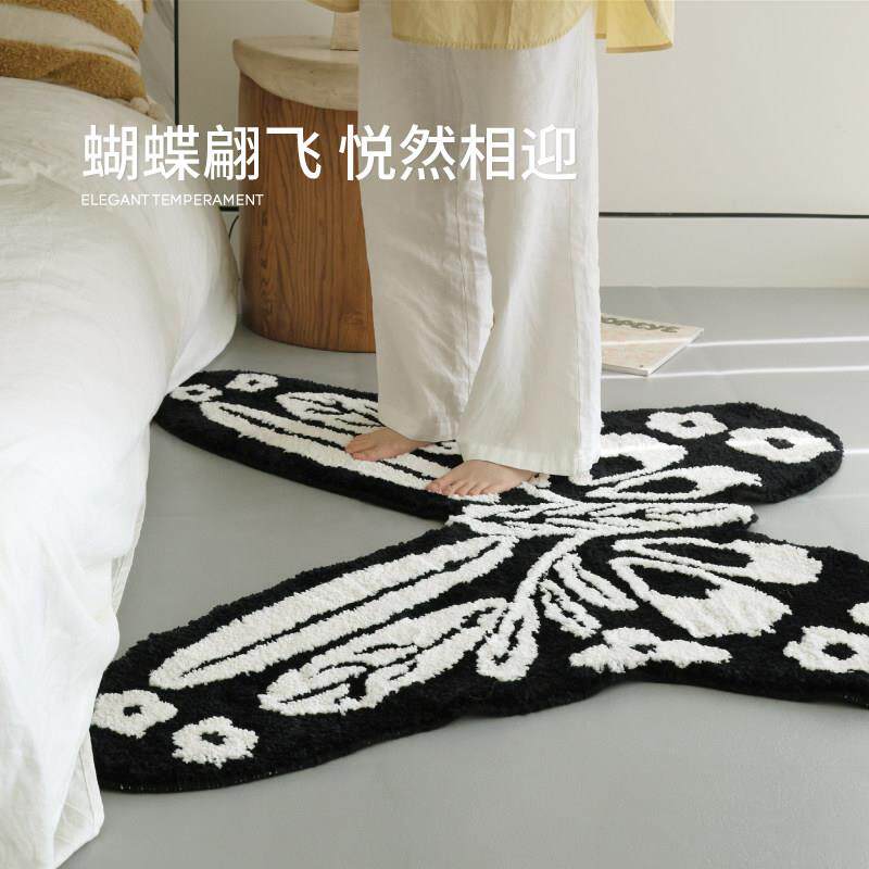 赛波斯蝶恋花床边毯异形蝴蝶地毯可机洗轻奢高级感客厅衣帽间卧室