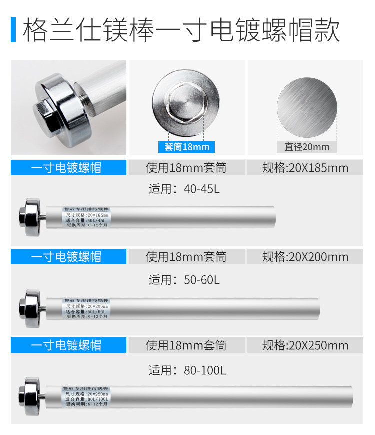 适用于格兰仕电热水器排污口镁棒高纯度除垢阳极棒40506080100升