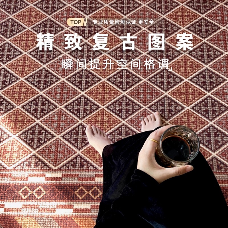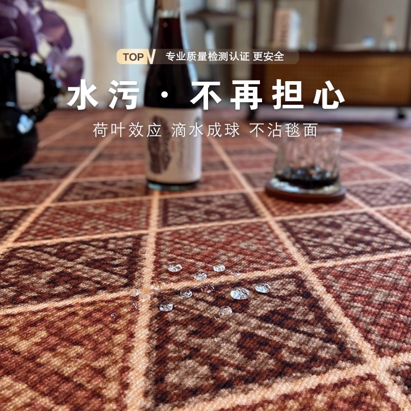 民族风地毯客厅沙发茶几毯棕色中古风地垫可擦免洗卧室床边毯耐脏