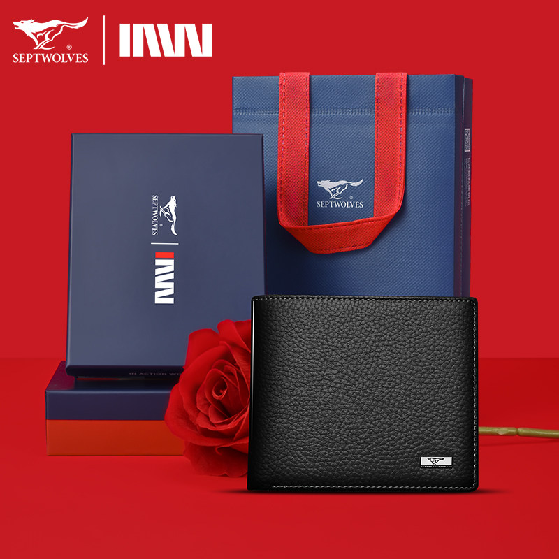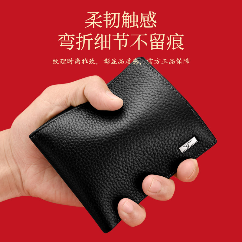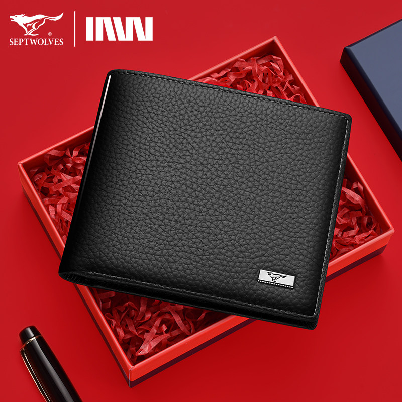 七匹狼钱包男士短款真皮简约零钱夹头层牛皮专柜正品潮牌学生皮夹