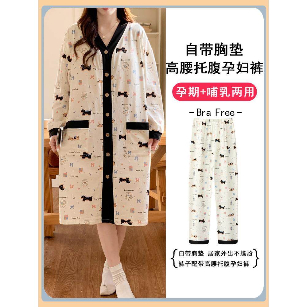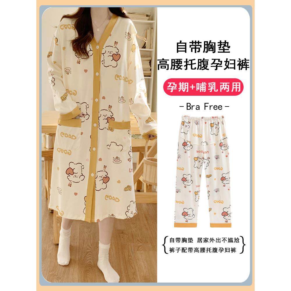 夏季坐月子服,纯棉孕妇薄睡衣,春秋季产妇住院护乳,孕妇裙,母