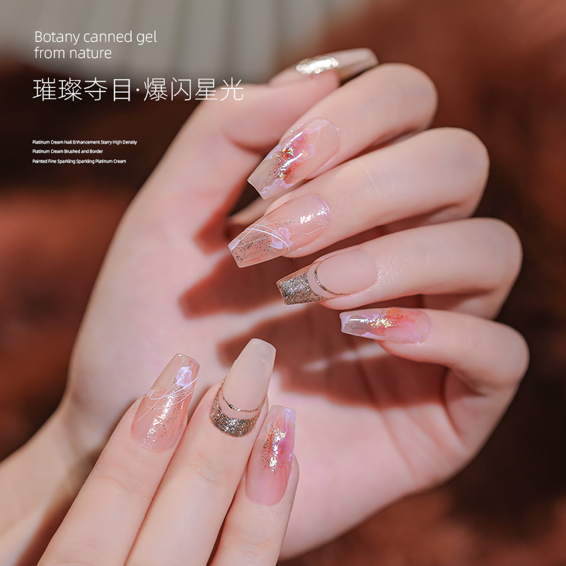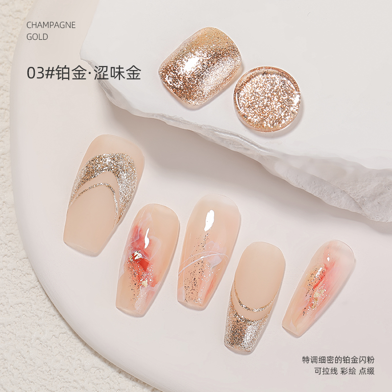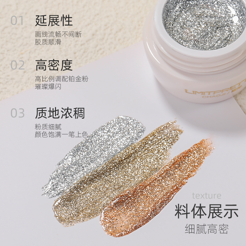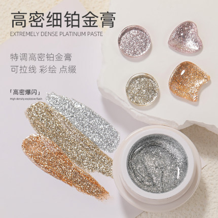 铂金胶美甲爆闪繁星高密度细银箔璀璨勾边彩绘银罐装光疗指甲油胶