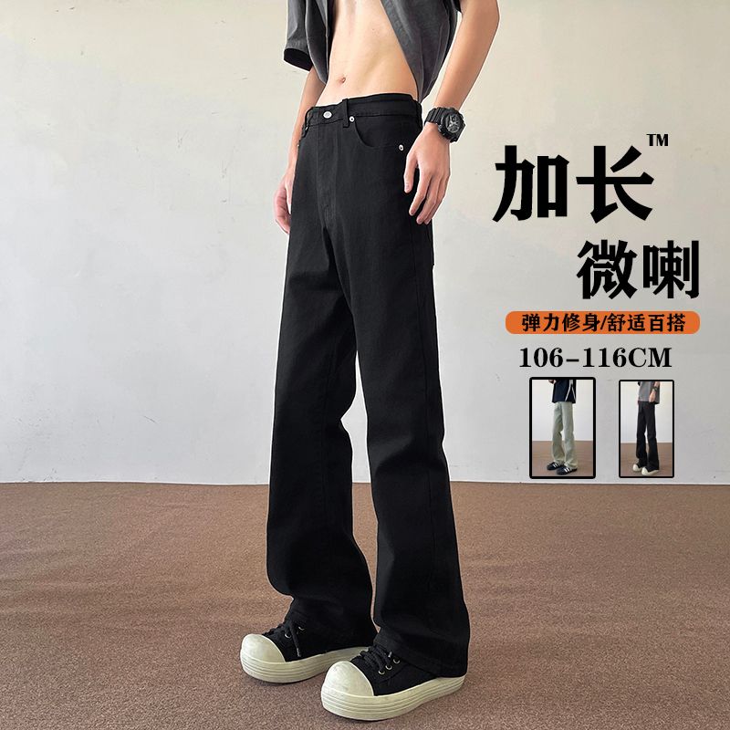 190高个子微喇牛仔裤男秋季款修身弹力直筒裤美式高街vibe加长裤