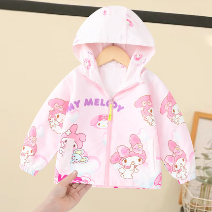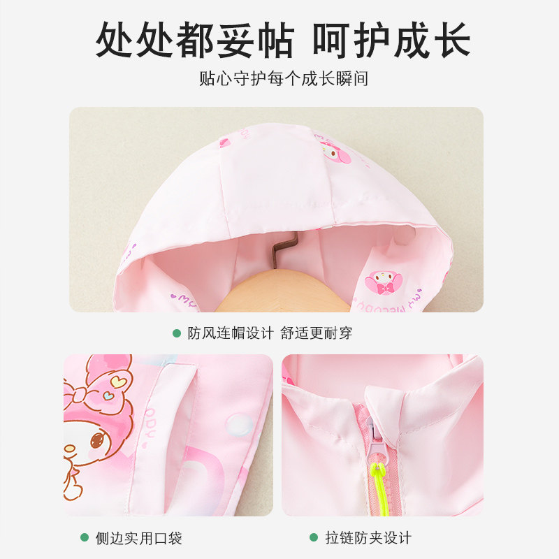 小女孩冲锋衣外套春秋季防风儿童连帽运动拉链衫宝宝粉色上衣春装