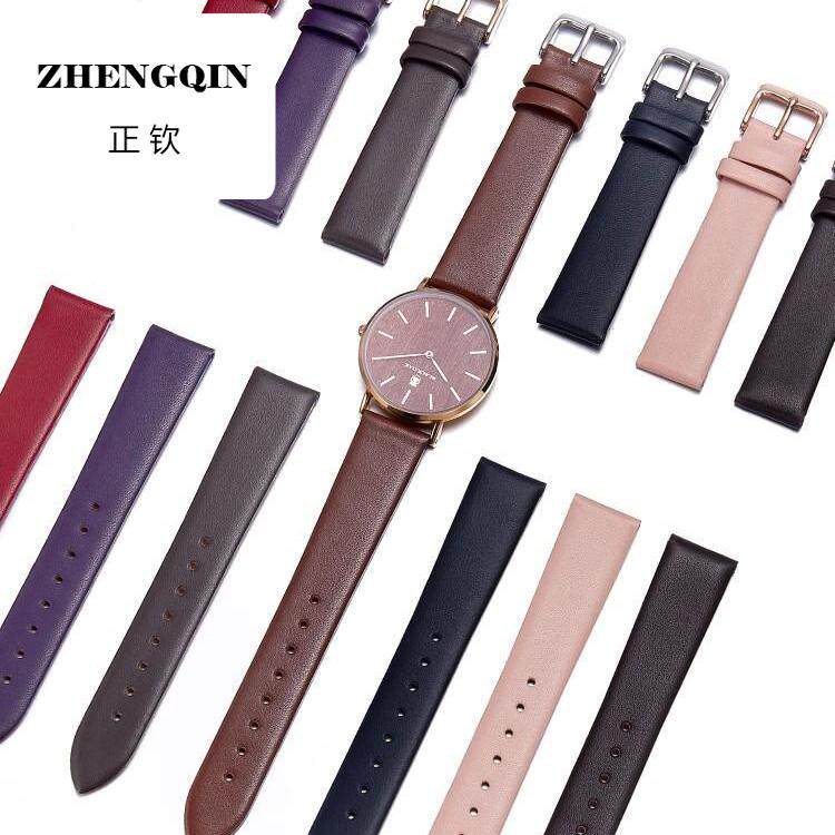 正钦超薄牛皮表链适用DWck阿玛尼罗西尼小绿表柔软真皮手表带男女