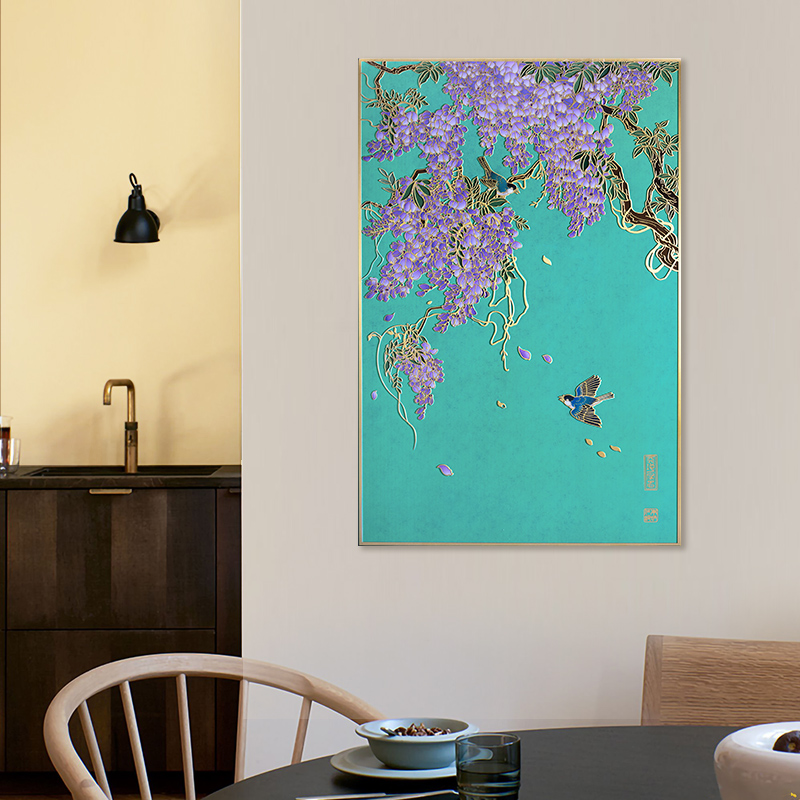 朱炳仁铜紫藤壁画中式简约室内书房玄关办公室铜雕装饰画富贵长春