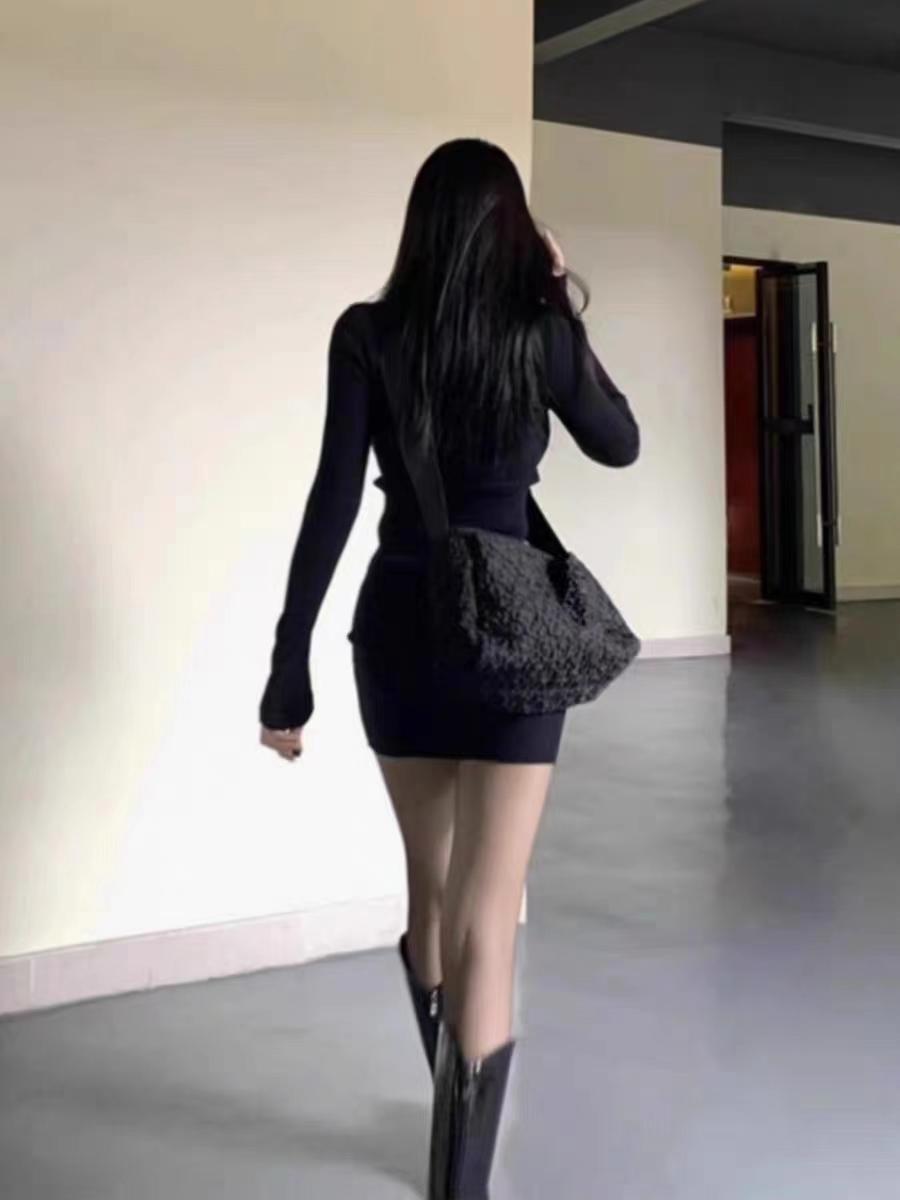大衣内搭打底黑色毛衣针织连衣裙子女秋冬新款大码修身显瘦包臀裙