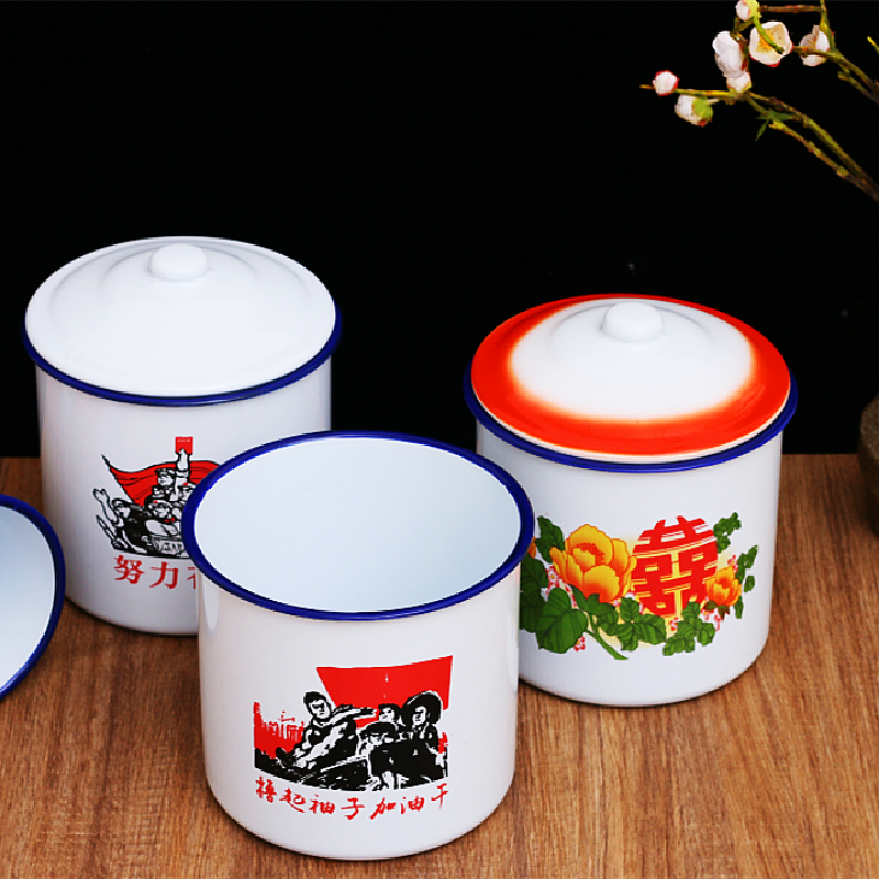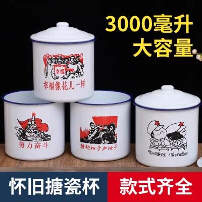 搪瓷杯怀旧经典带盖复古怀旧马克杯老式茶缸洋瓷茶杯铁水杯3000ml