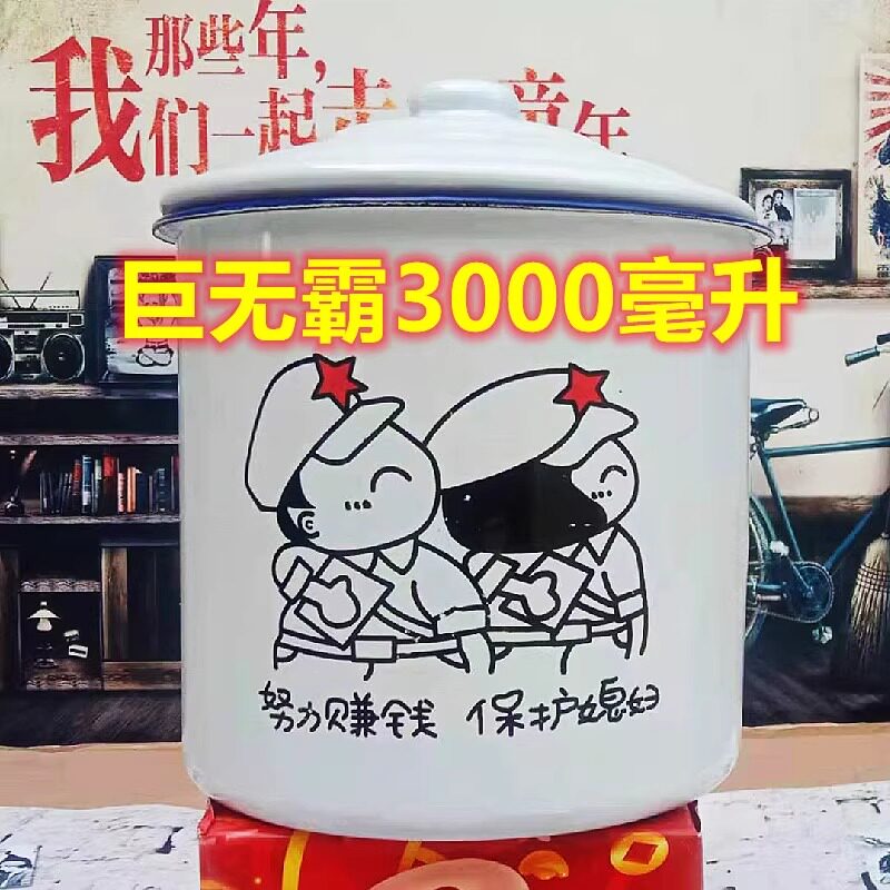 大容量3000毫升复古风怀旧搪瓷杯