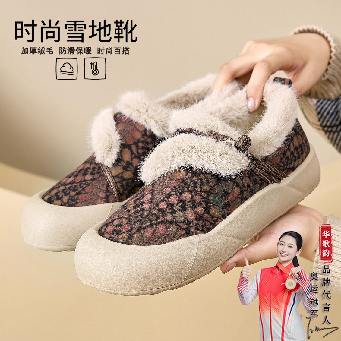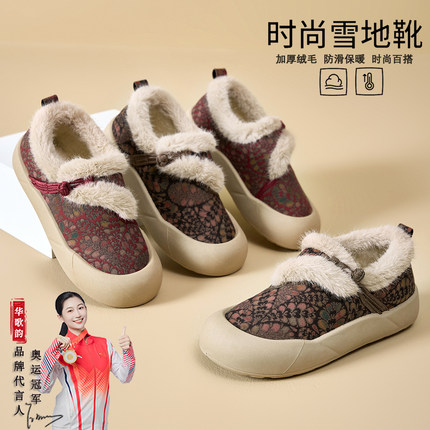 国风绵羊毛棉鞋妈妈鞋女2025冬季新款毛毛鞋加厚底保暖防滑雪地靴