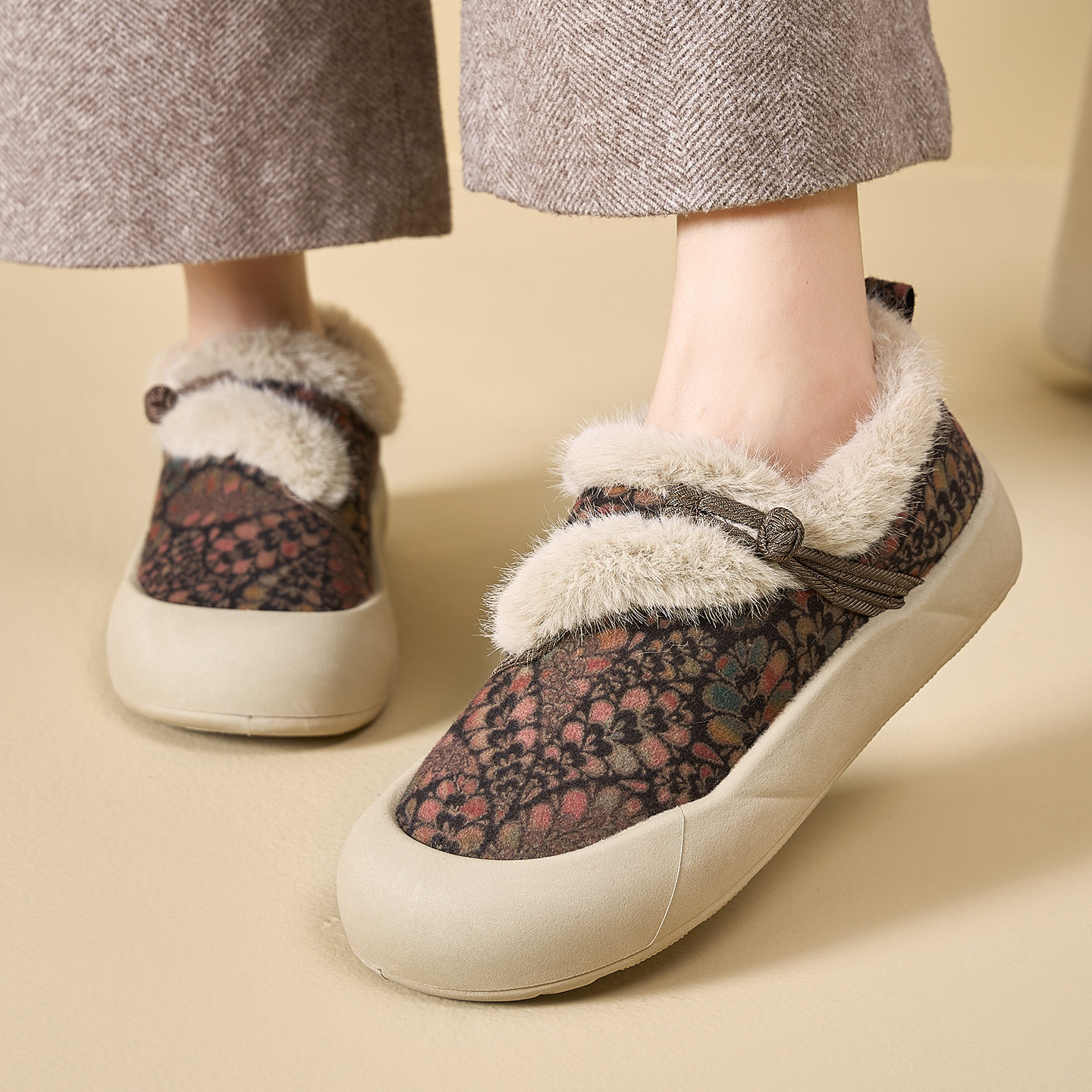 国风绵羊毛棉鞋妈妈鞋女2025冬季