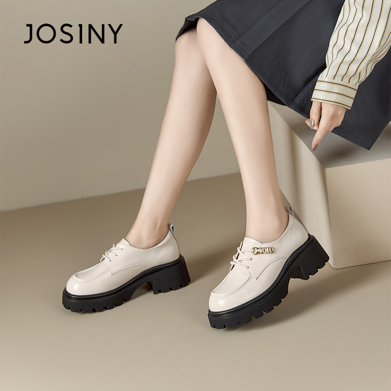 卓诗尼白色乐福鞋女春秋季厚底圆头一脚蹬单鞋百搭配裙子jk小皮鞋