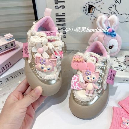 女童高颜值运动鞋秋冬季加绒皮面儿童女鞋秋季薄绒二棉低帮板鞋女