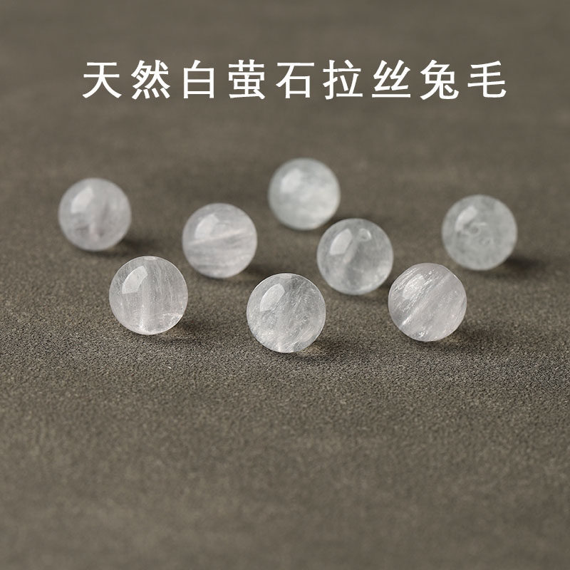 7A天然白萤石拉丝兔毛散珠手串女士diy手工手链项链水晶多宝单颗
