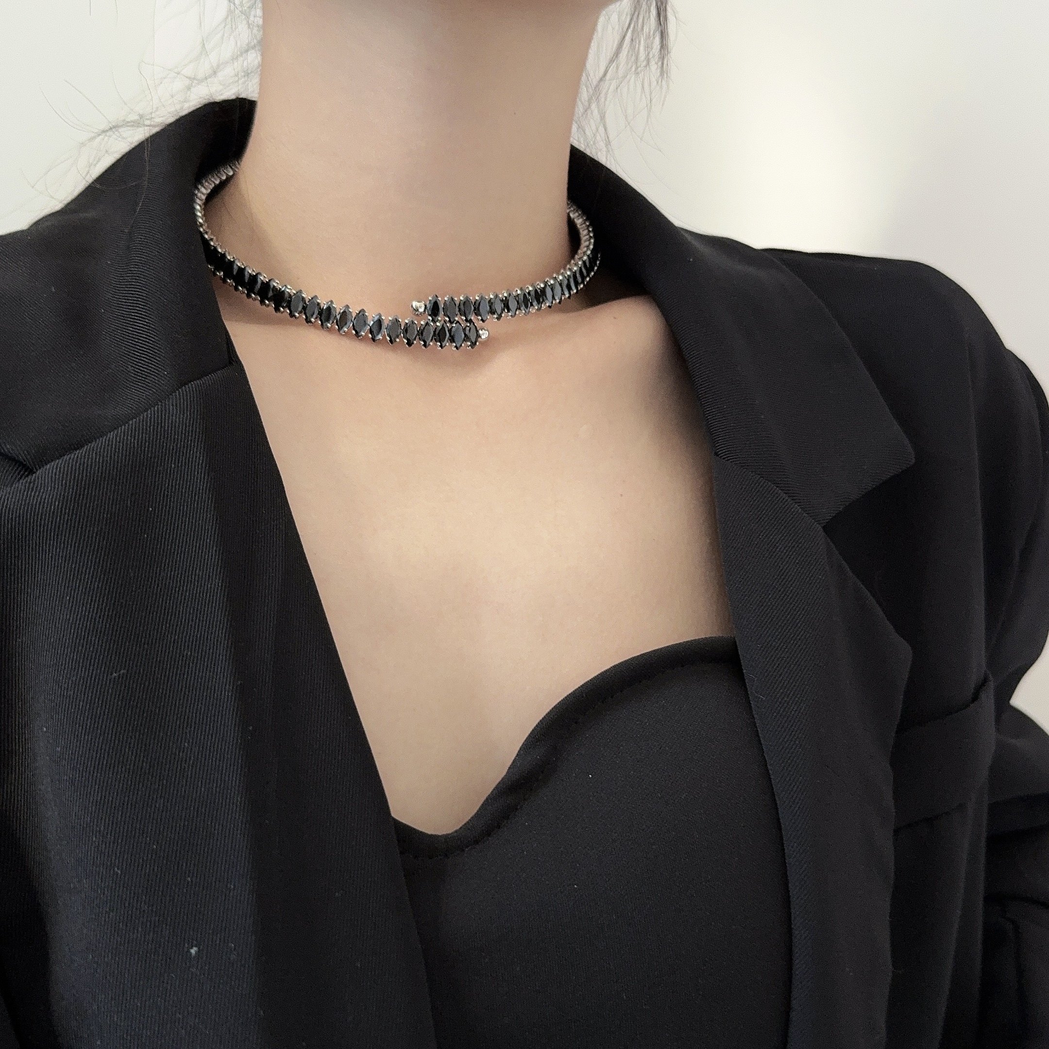 轻奢小众满钻超闪项圈项链高级感配礼服女时髦精致颈链锁骨链项饰