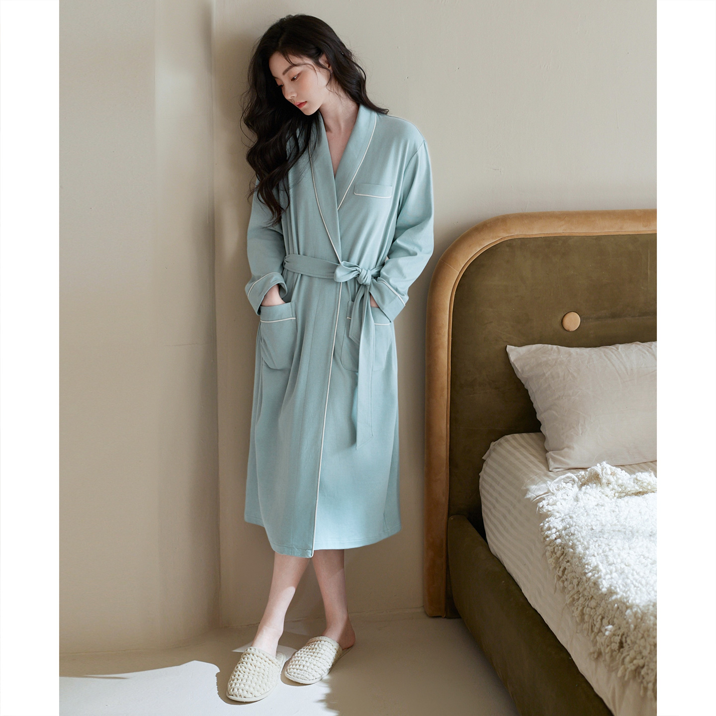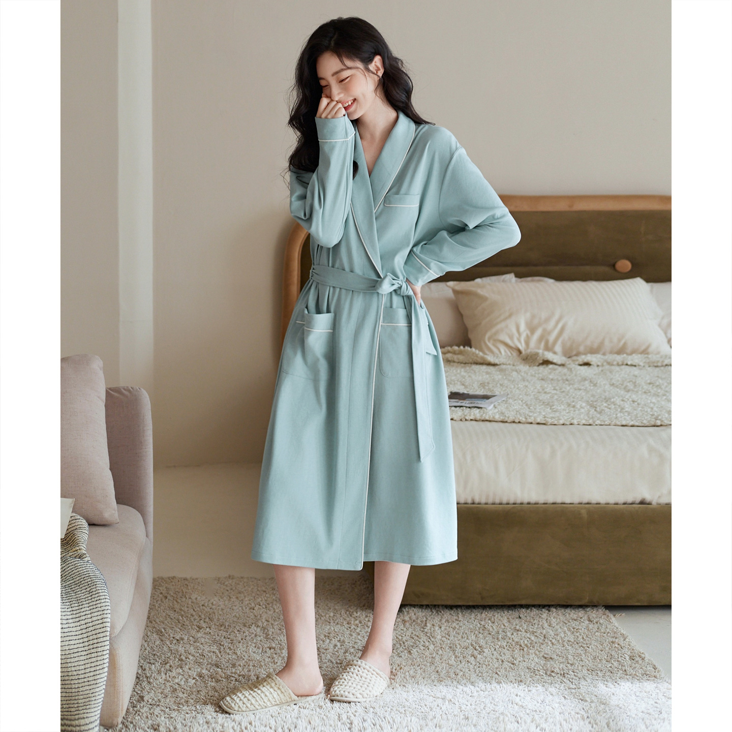 睡袍女春秋款纯棉长袖秋季大码长款浴袍睡衣秋冬四季款浴衣家居服