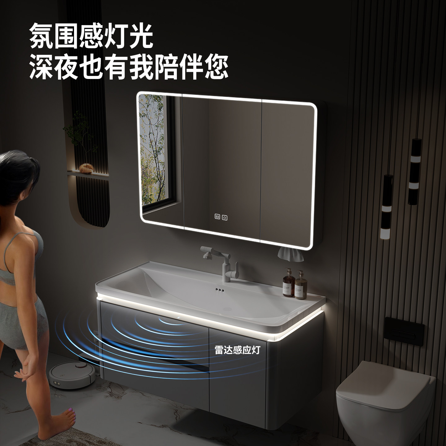 JOMOW 卫生间太空铝蜂窝铝浴室柜组合陶瓷一体盆洗漱洗手洗脸盆柜