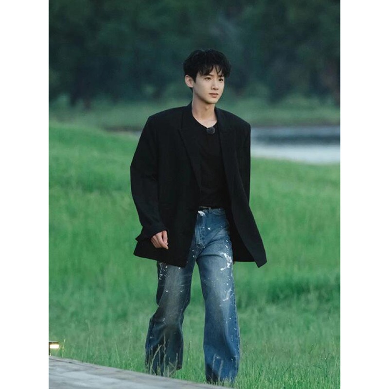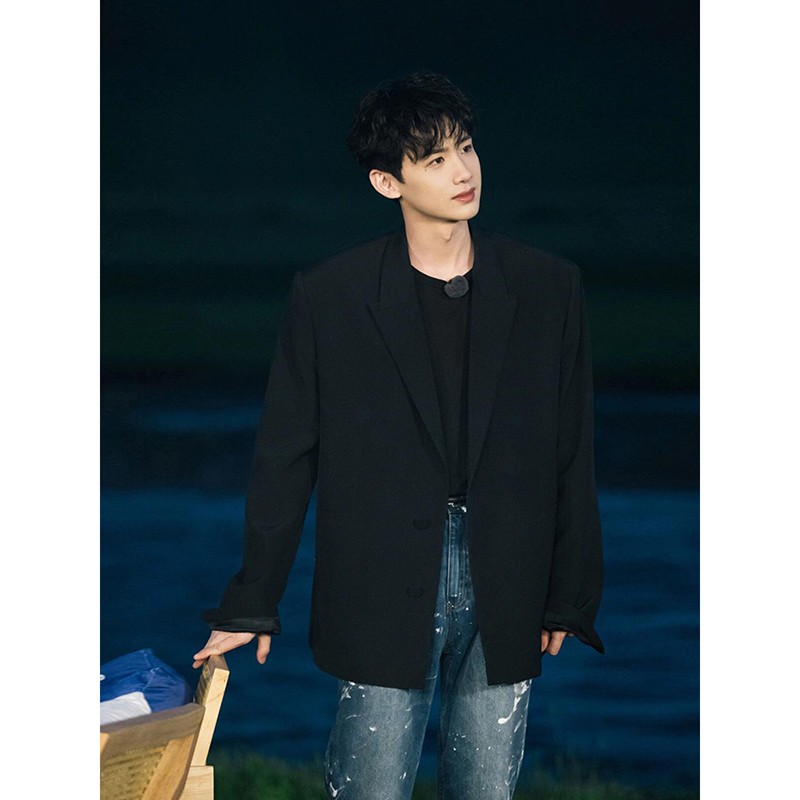 白敬亭同款垫肩dk男生西装高级感痞帅韩版休闲西服戗驳领单西外套