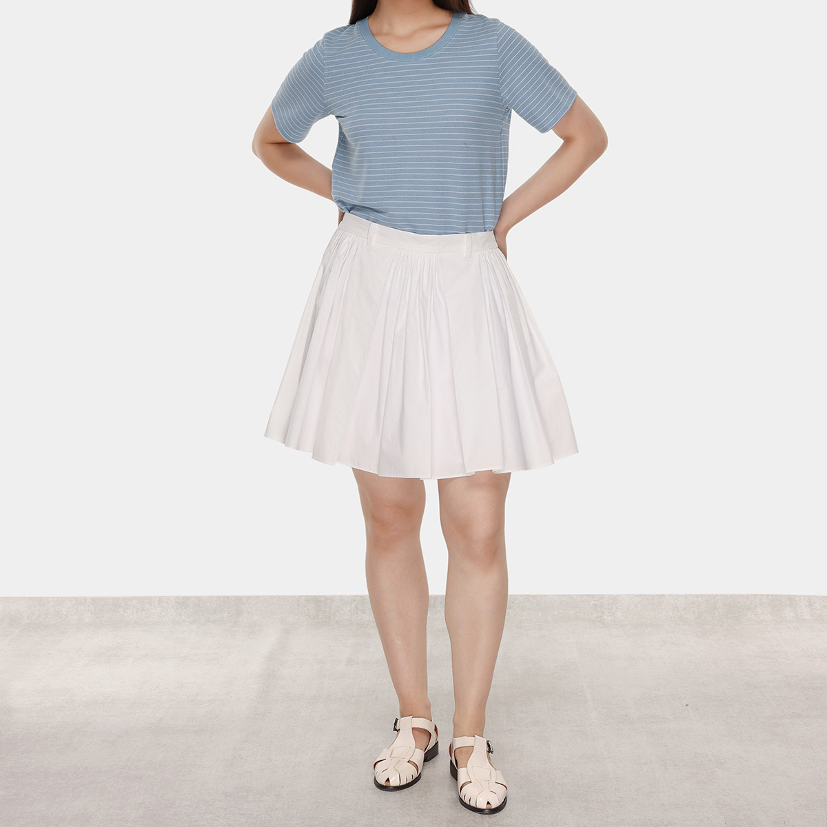 ROSEPLUS白色A字高腰百褶半身裙女夏季小个子大码微胖mm气质短裙