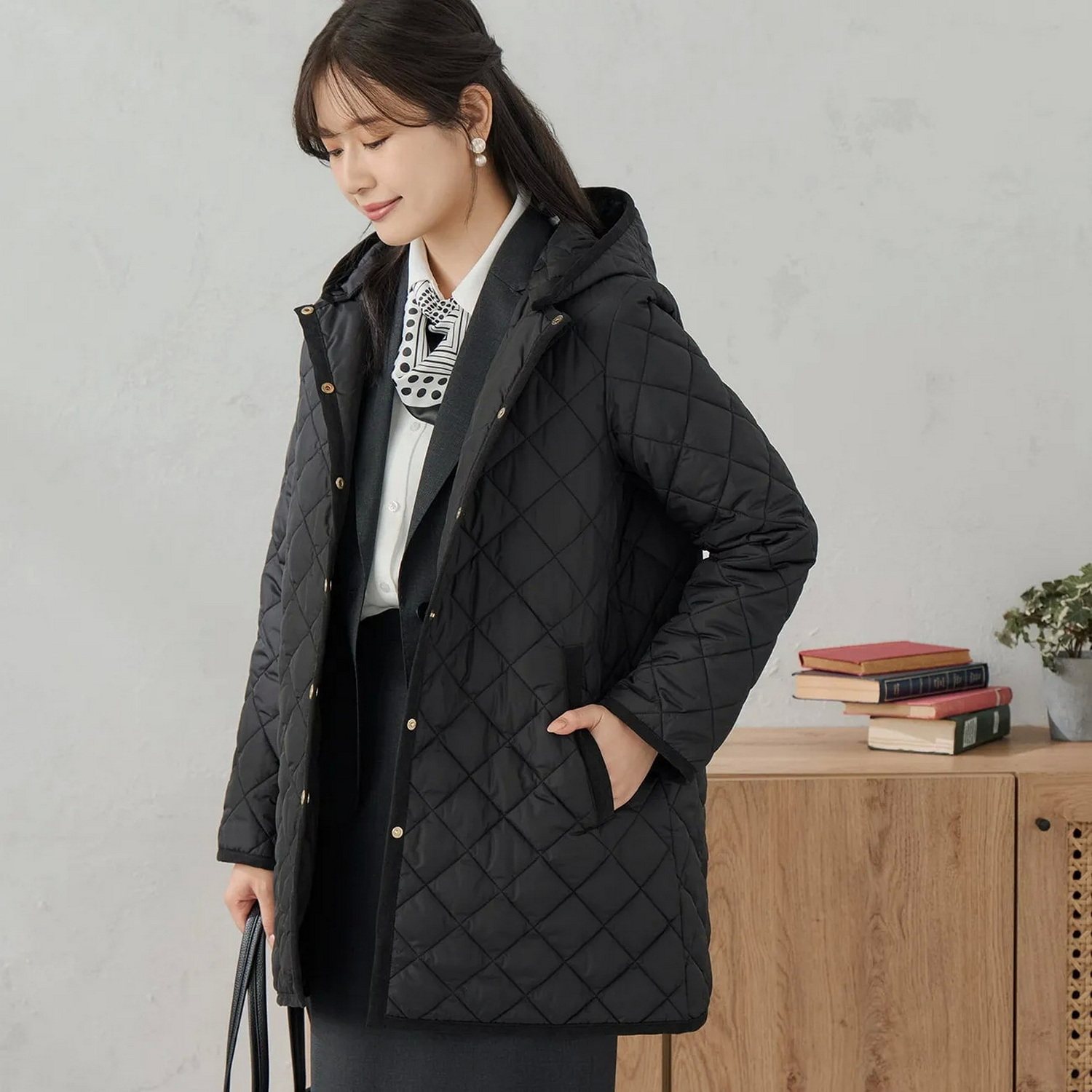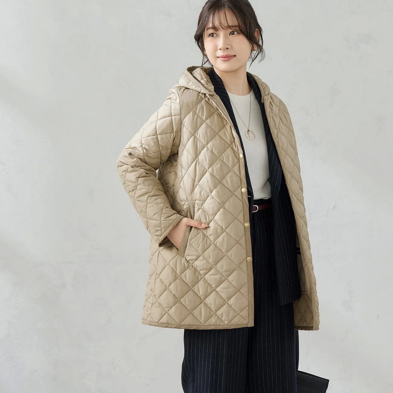 代1800+0ggi杂志款 全客供琎口面辅料 轻暖连帽可拆菱格棉衣外套