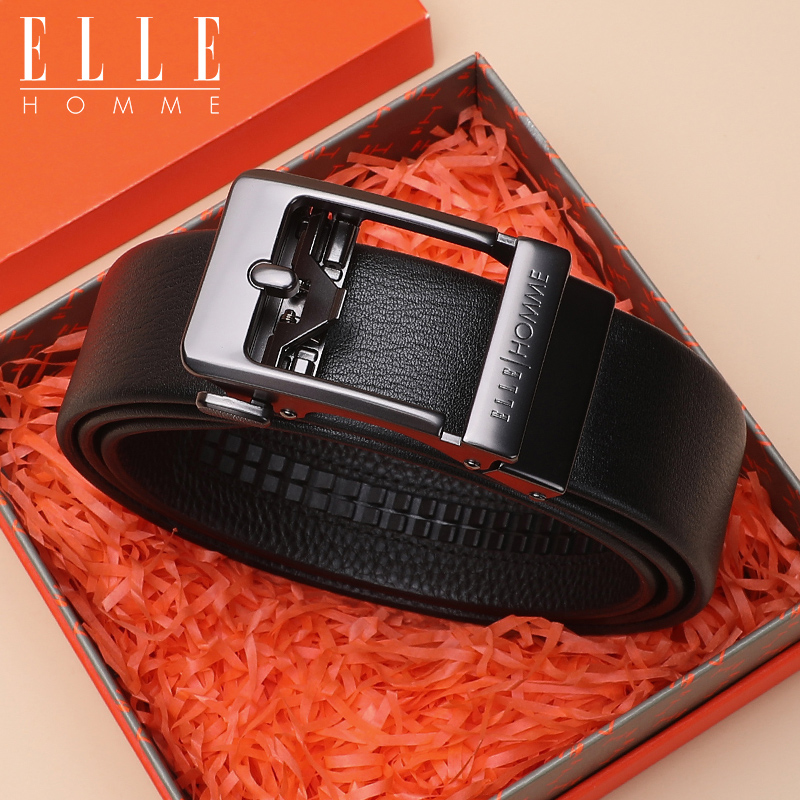 ELLE HOMME时尚皮带男真皮自动扣头层牛皮腰带年轻人品牌正装裤带