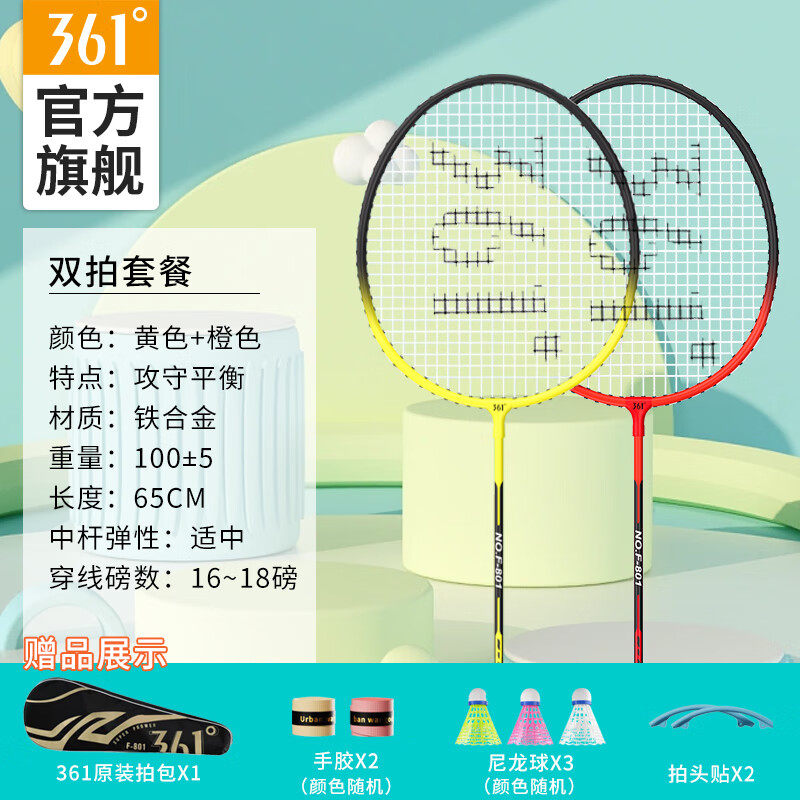 361度羽毛球拍成人铁合金双拍套装儿童成人初学者耐用高弹力羽拍