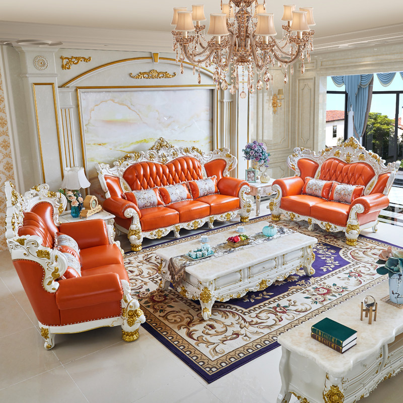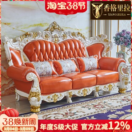 欧式真皮沙发美式奢华客厅豪华进口头层牛皮实木雕花皮艺沙发1234