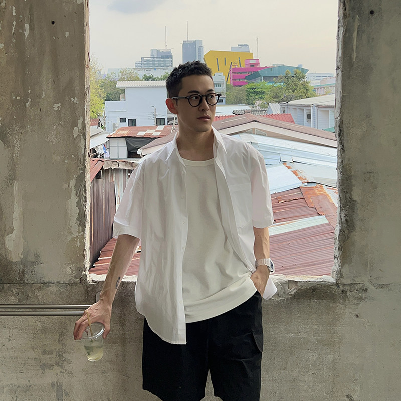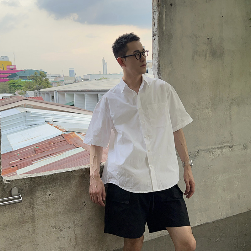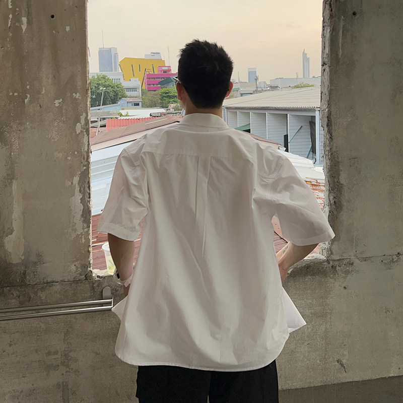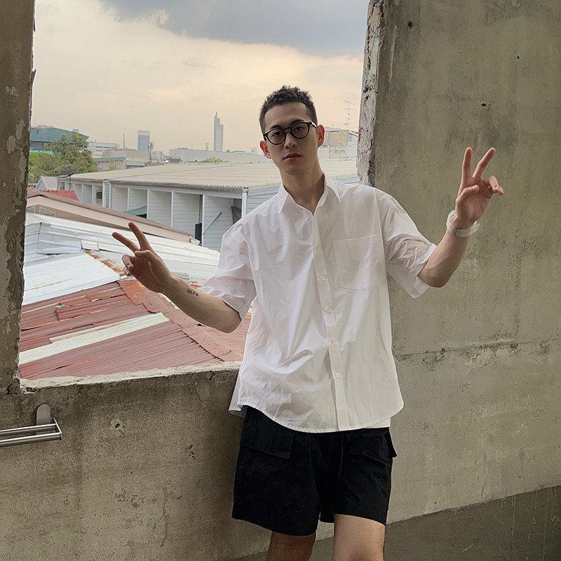 Nick Tian 白色短袖衬衫衬衣男生夏季新款少年感韩版简约宽松休闲