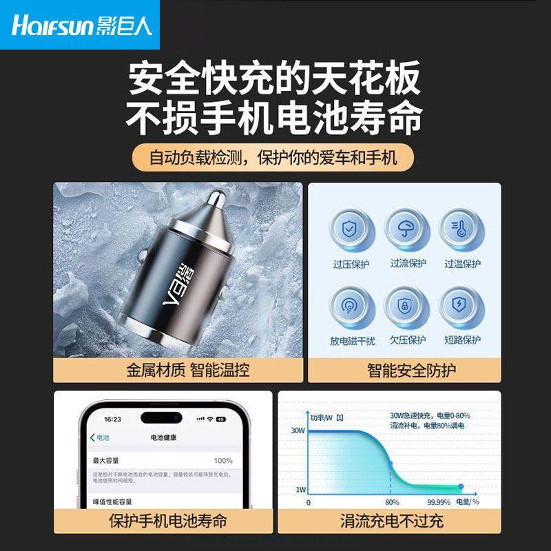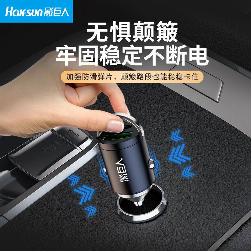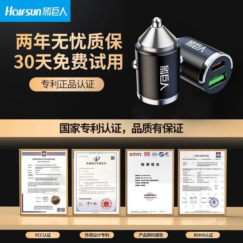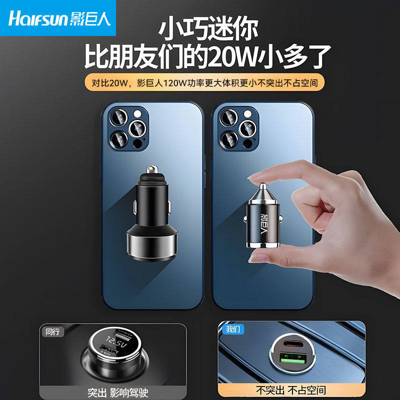 影巨人隐形车载充电器120W超级快充一拖二点烟器苹果汽车手机闪充