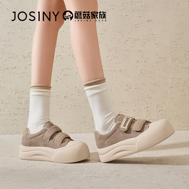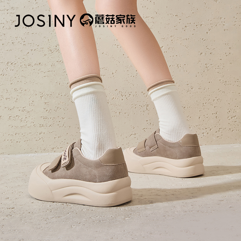 卓诗尼厚底小白鞋女爆款春季魔术贴女鞋饼干鞋增高休闲面包鞋