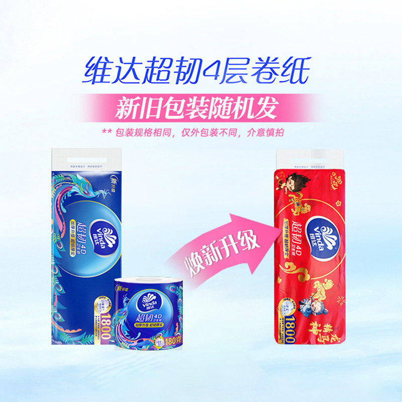 维达4d立体美压花卷纸空心纸巾超韧1800克卷纸筒卫生纸厕纸V4688