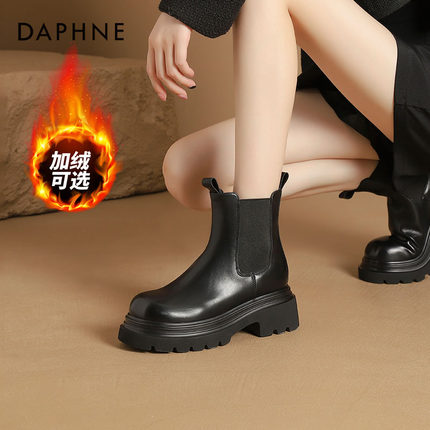 达芙妮马丁靴女款2025新款秋冬靴子女切尔西靴烟筒靴黑色厚底短靴